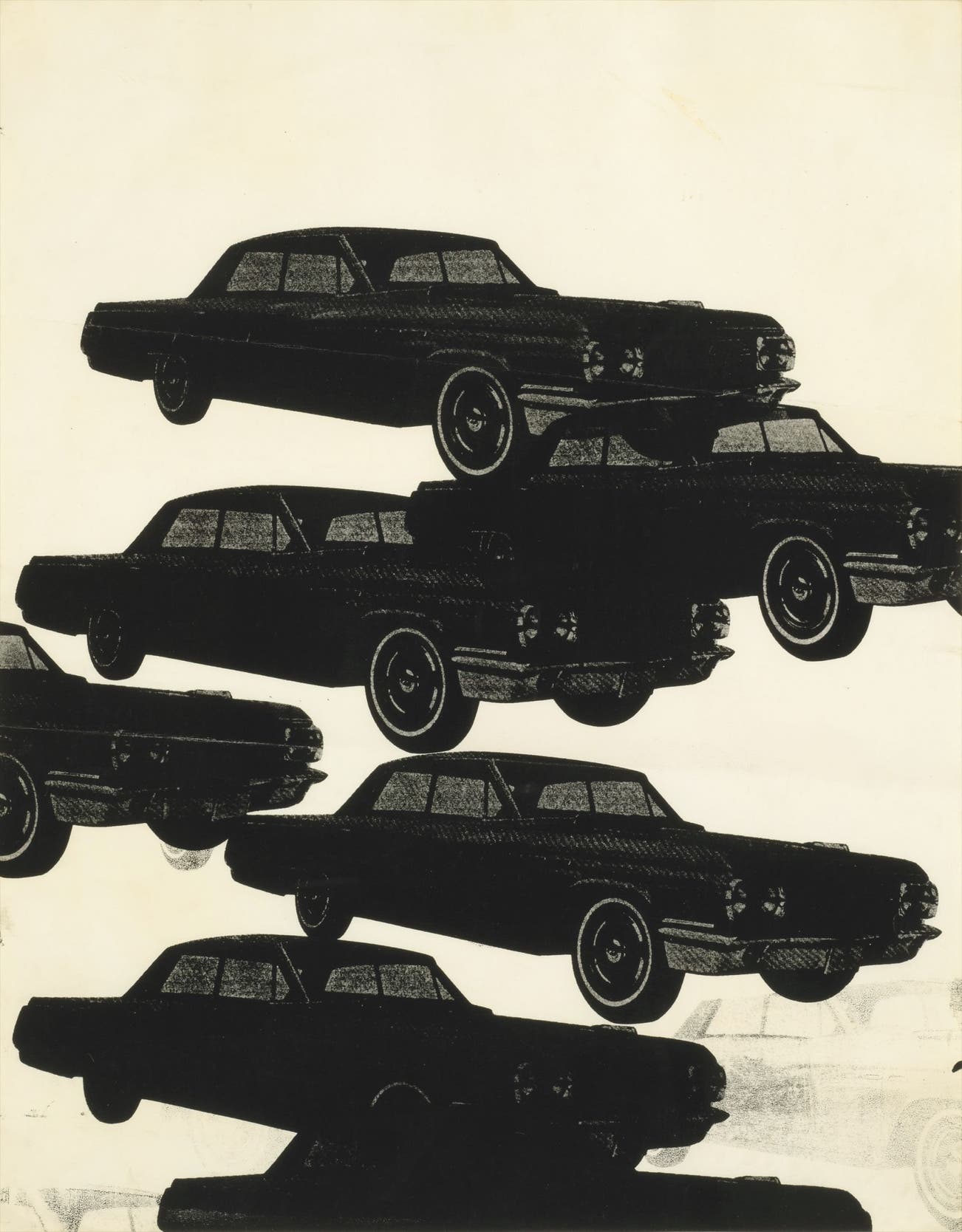 Executed in 1962,Untitled (Cars) is a perfect example of Andy Warhol’s studies into America’s growing consumerism in the mid 20th century. At a time when the American people collectively took strides towards their individual slice of the American dream, Warhol’s commercial imagery explored this phenomenon along with its trappings of desire and the ‘pop culture’ which it ensued. The subject choice of the present lot is the absolute definition of America’s aspiration at this time, through the artist’s decision to use his nation’s most famous development, the motor car. The revolution of motorised transport not only changed the modern world but had also become the American symbol for ambition through its connotations of wealth and status. Drawing a parallel with this transitional and productive time for America, Warhol, as a successful artist, had also made a similar journey with his early foray into commercial illustration providing the foundations for his meteoric rise as an independent artist in his own right. This early commercial grounding played a significant role in his adopted artistic processes, such as the screen printing technique found in this present lot, which often mirrored the mass production of the subject he sort to depict. Warhol’s oeuvre encapsulates arguably some of the most famous images of the 20th century- perhaps most notable are his works of Campbell’s soup cans and those of the celebrities which became symbolic of the 1960s such as Marilyn Monroe. Untitled (Cars) comes from the same year as these iconic images; being equally seminal in subject, this lot is truly characteristic of Warhol and his legacy as the most celebrated American artist of the 20th century.