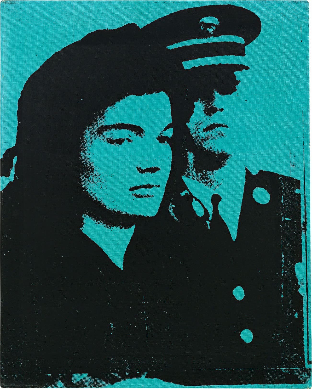 Catapulted to star status by her husband's election as President of the United States in November 1960, Jackie Kennedy became an inspiration to millions in the optimistic climate of a rejuvenated post-war America. Epitomizing youth, beauty and style, she became the ideal of a wife, mother and First Lady to the nation. In Jackie, 1964, she is shown with an escort at the funeral for her husband on November 25, 1963, three days after his assassination in Dallas, Texas. In extraordinarily solemn grief and intimate despair, the image reveals the new widow with a blank, shocked expression as if the reality of the day's events cannot be absorbed. Part of a group of eight original black and white photographs Warhol selected from a variety of printed sources, first published in the weeks following the assassination, the selections present personal and collective grief in a radically new manner. "Then, for the first time, there were many who experienced the banality of illustrious death, time being measured by the flash: a gasping instant…" (R. Guidieri, "JFK", Andy Warhol: Death and Disasters, 1988-89, exh. cat., Houston: The Menil Collection, p. 29).