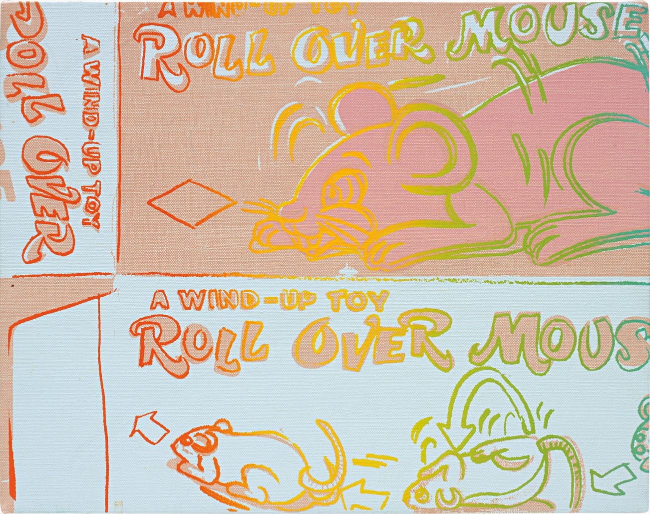 Like much of Warhol’s work, which is at once detached yet intimate, Toy Series draws upon this duality: all of the toys used for the “Paintings for Children” series came from the artist’s own personal collection of tin toys. The wavering lines of the hand-drawn contour manifest Warhol’s connection to his subject, reinvigorating the serialised image with the artist’s own touch. And yet, the present lot reminds us of our own superficial and temporal enchantment as consumers; we will inevitably forget the image that first drew us in to purchase. Immediately discarded in the child’s rapt pleasure, Warhol memorialises the cardboard packaging. Like his iconic Brillo boxes and Campbell’s soup cans, Toy Series is a symbolic nod to the artist’s roots in advertising. The painting transports us into a world of whimsical play of subject and colour, subtly reminding us of the fleeting nature of childhood.