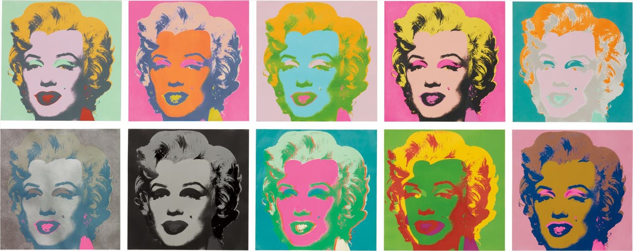 Borrowing from his own catalogue of imagery, this portfolio of silkscreens was conceived after Warhol first rendered Marilyn in acrylic in 1962. This reinvention of his most iconic work refreshes the images, effectively re-appropriating his painting. The 10 images of Marilyn epitomize the haunting representations of the film star; the icon of Hollywood is illuminated by every possible phosphorescent hue, simultaneously lending the screen goddess an eerie quality as we remember her timeless beauty and unrivaled persona. Repeated ten times before us, the portrait is a monument to the star’s legendary beauty, her glamorous Hollywood existence, and Warhol’s pivotal affinity for the tragic idol.