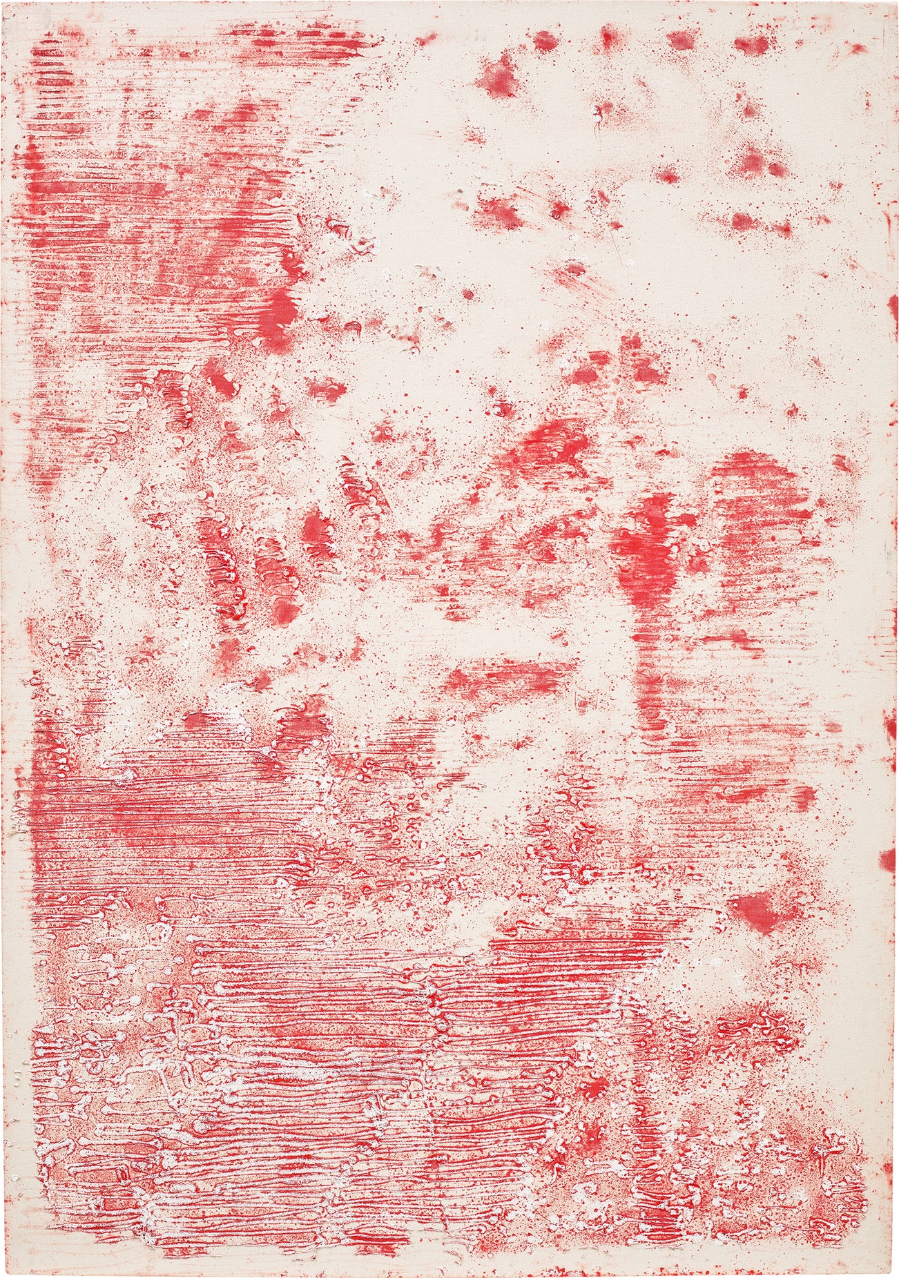 cadmium pigment and silicone on raw canvas