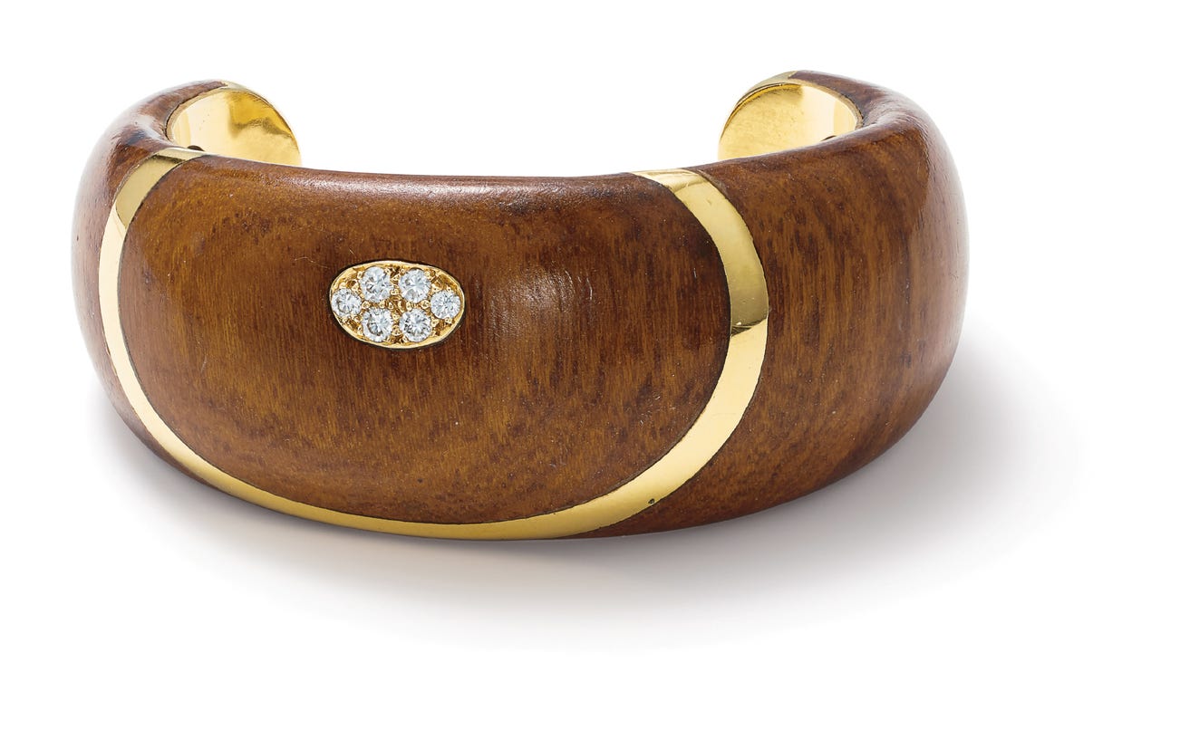 A Wood, Diamond and Gold Bracelet