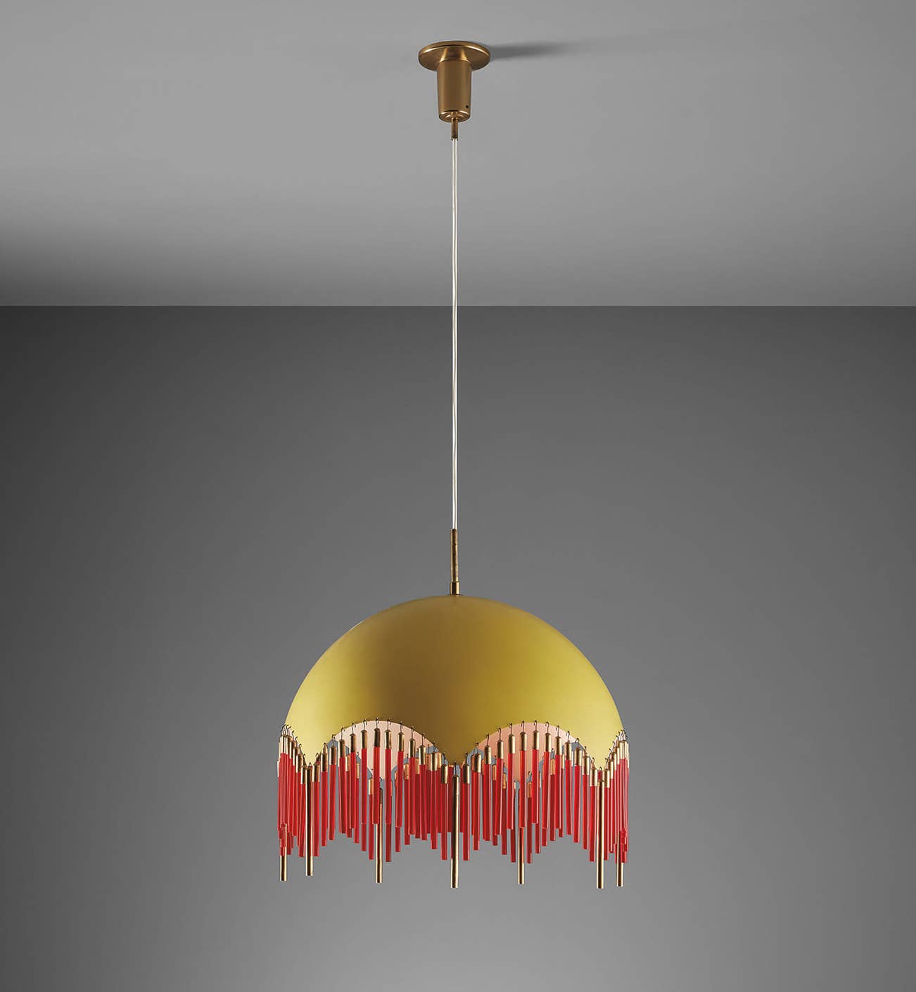 Painted aluminum, brass, glass.