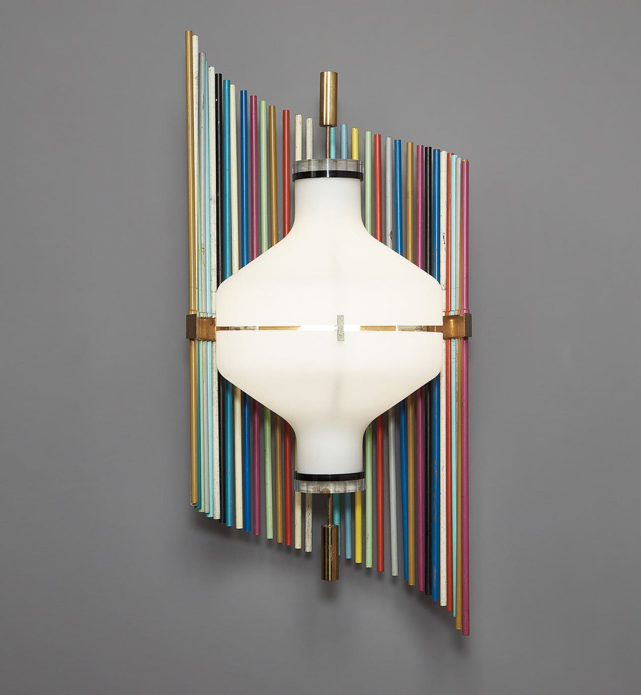 Brass, painted aluminum, glass, acrylic.