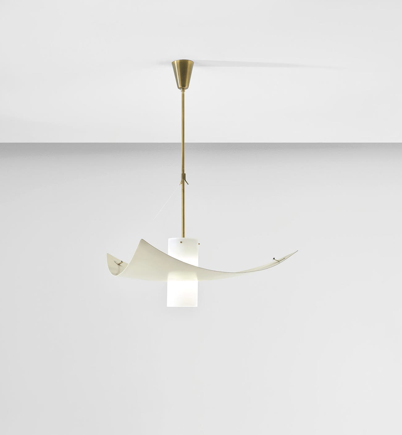 Painted aluminium, brass, glass, nylon strings.
