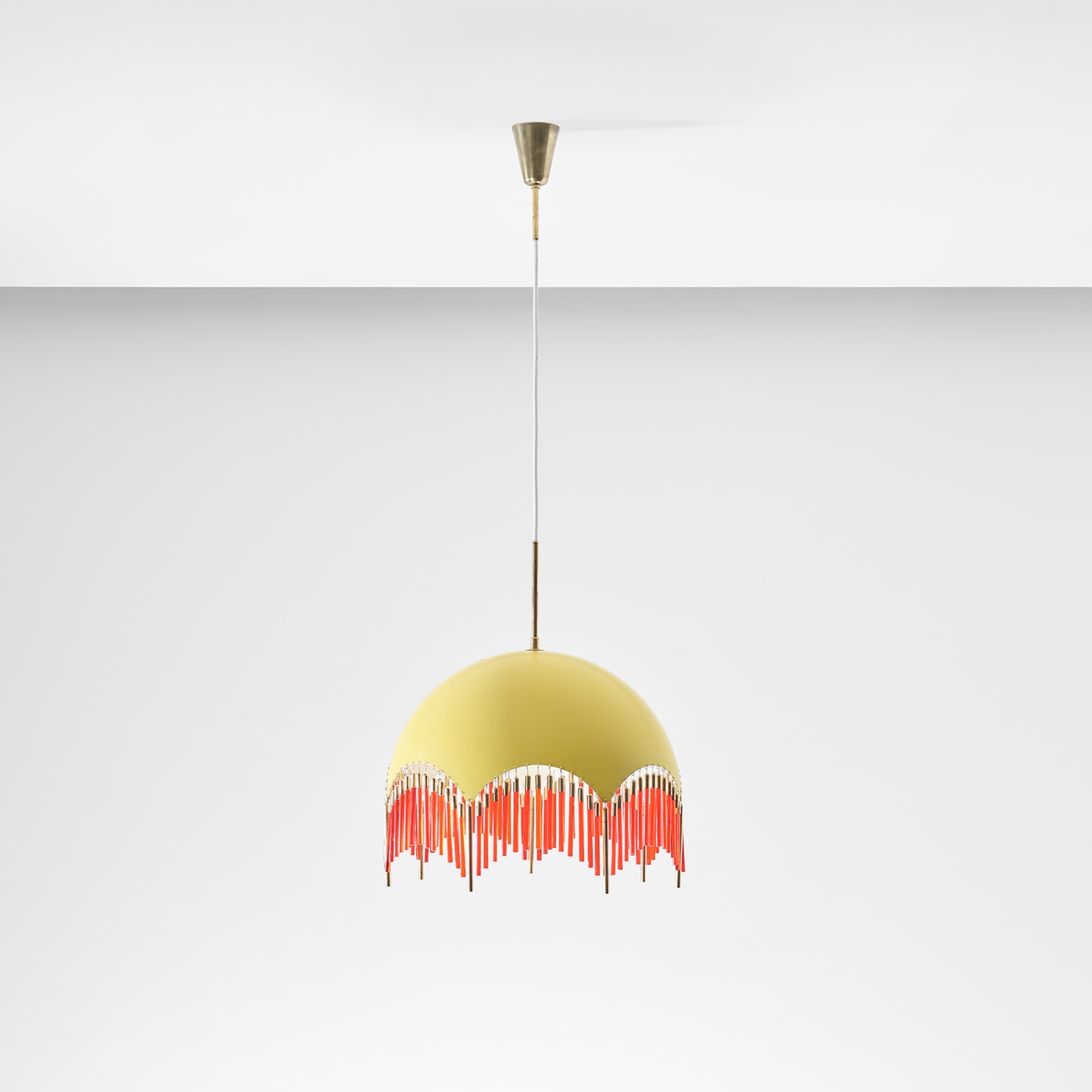 Painted aluminium, coloured glass, brass.