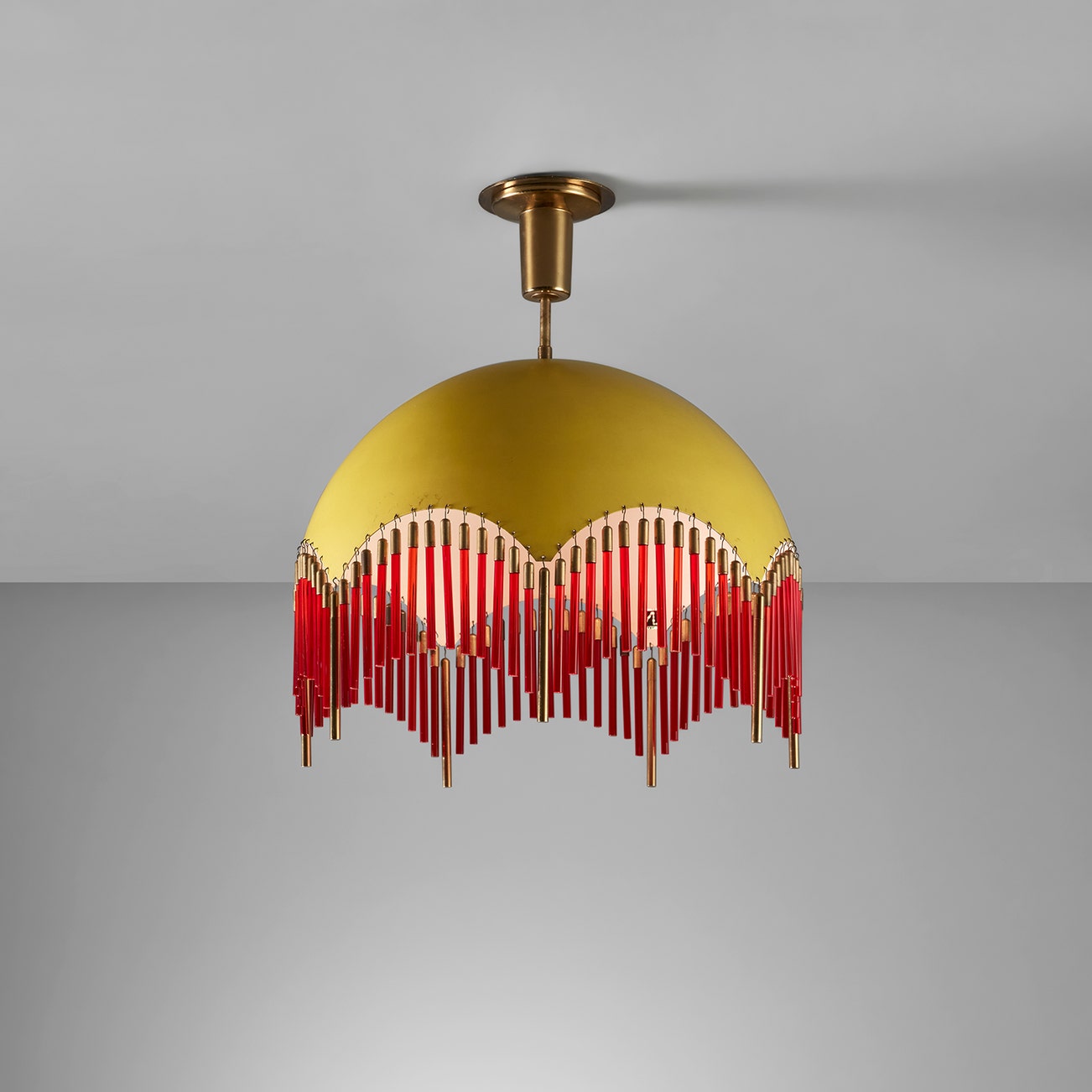 Painted aluminum, brass, glass.