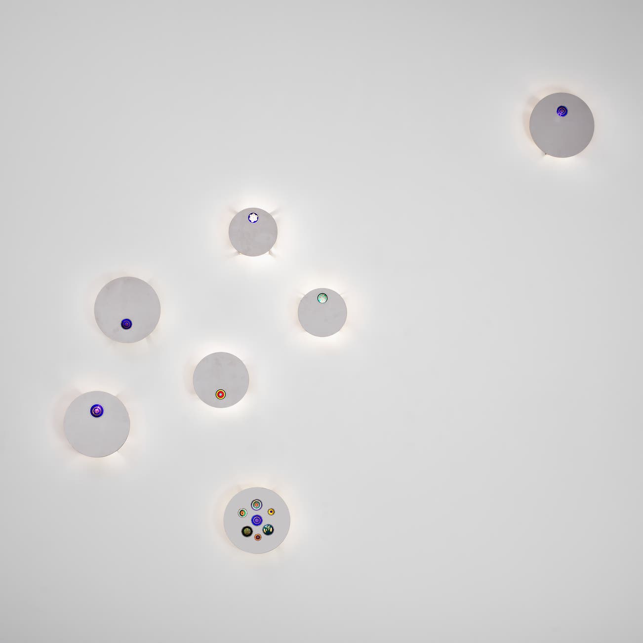 Stainless steel, acrylic, painted aluminium, murrine glass.