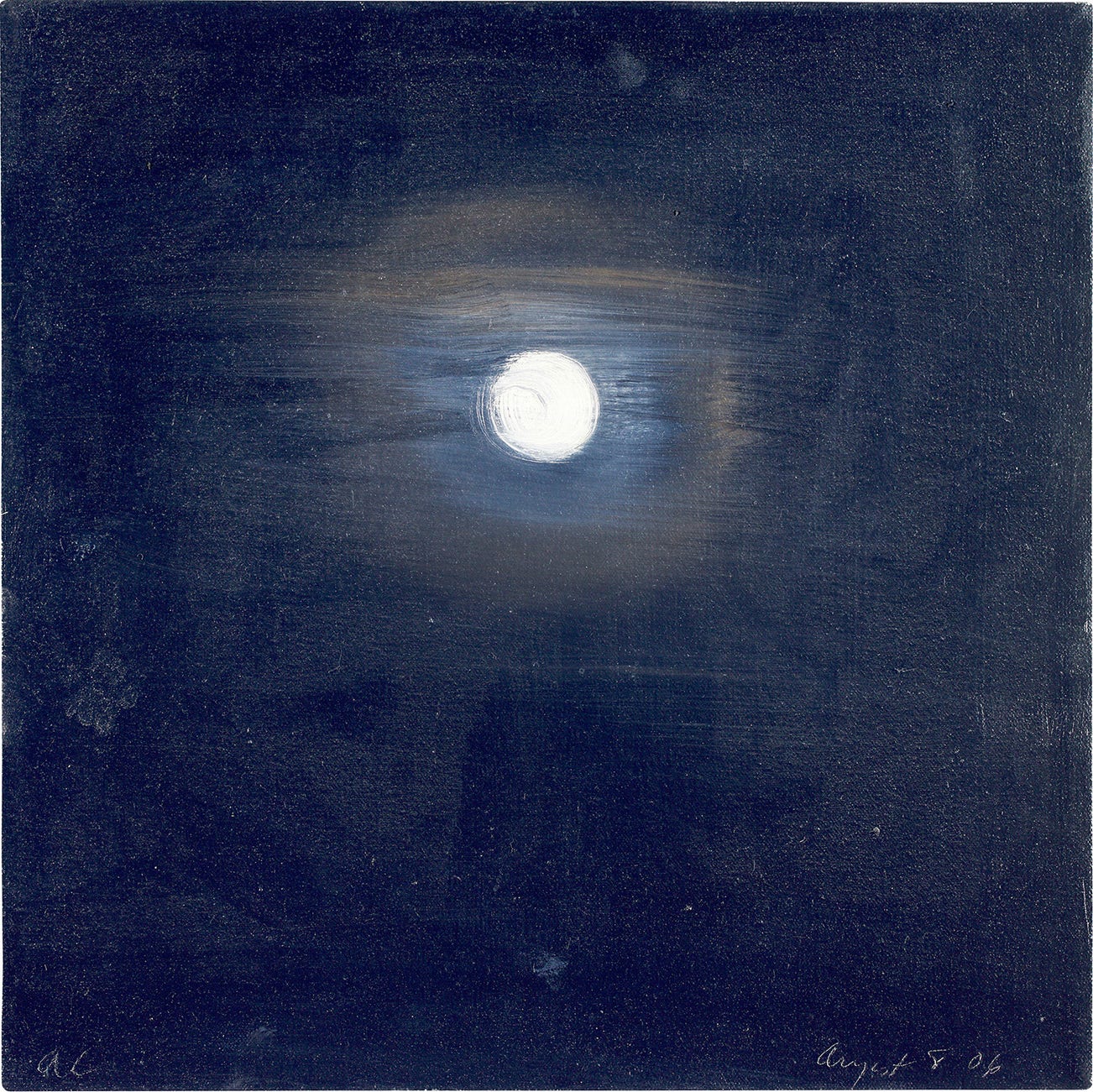 "The moon kept staring at me, so I started to stare back at it. If it didn’t change constantly, I wouldn’t paint it so often. For my 2006 show in New York City, I painted 400 paintings outside at night while looking at the sky. They were all the same size – 14x14”. The paintings are a little like poems, each one wants to be a star. New York City with all its bright lights is not an ideal place to do something like this, but who cares. It doesn’t affect it that much. If you ever see one in person, you’ll understand. After I finished these, I copied each one by hand in my studio and hung them in a different place hundreds of miles away. Since there were 400 paintings total, this was a big job. But I got it done. When the paintings hang together they are like one big pulsating painting. I can’t do something that I don’t like to do for very long, that’s why I copy my own work sometimes. When I paint them I tend to think of the people I love who have died and how many times they looked up at the moon." (Ann Craven, 2006)