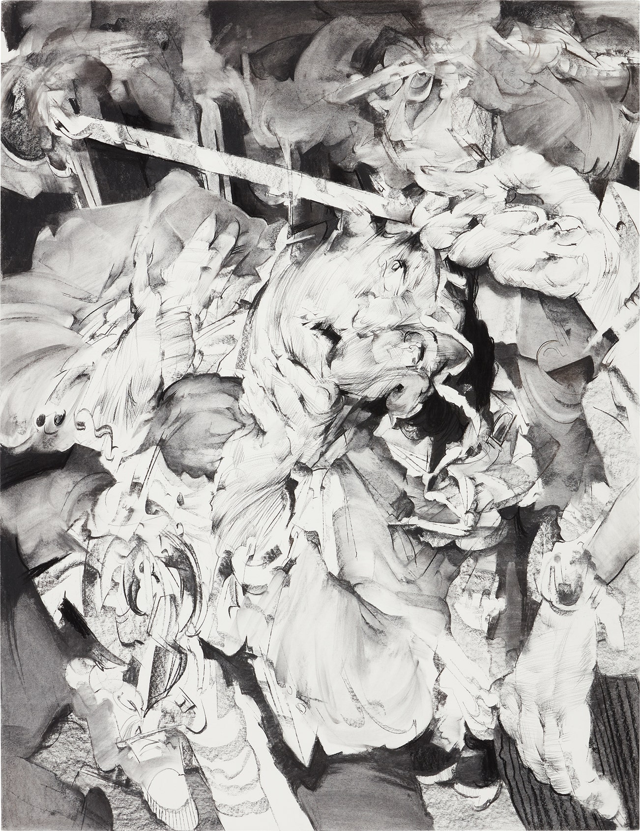 charcoal on paper mounted to panel