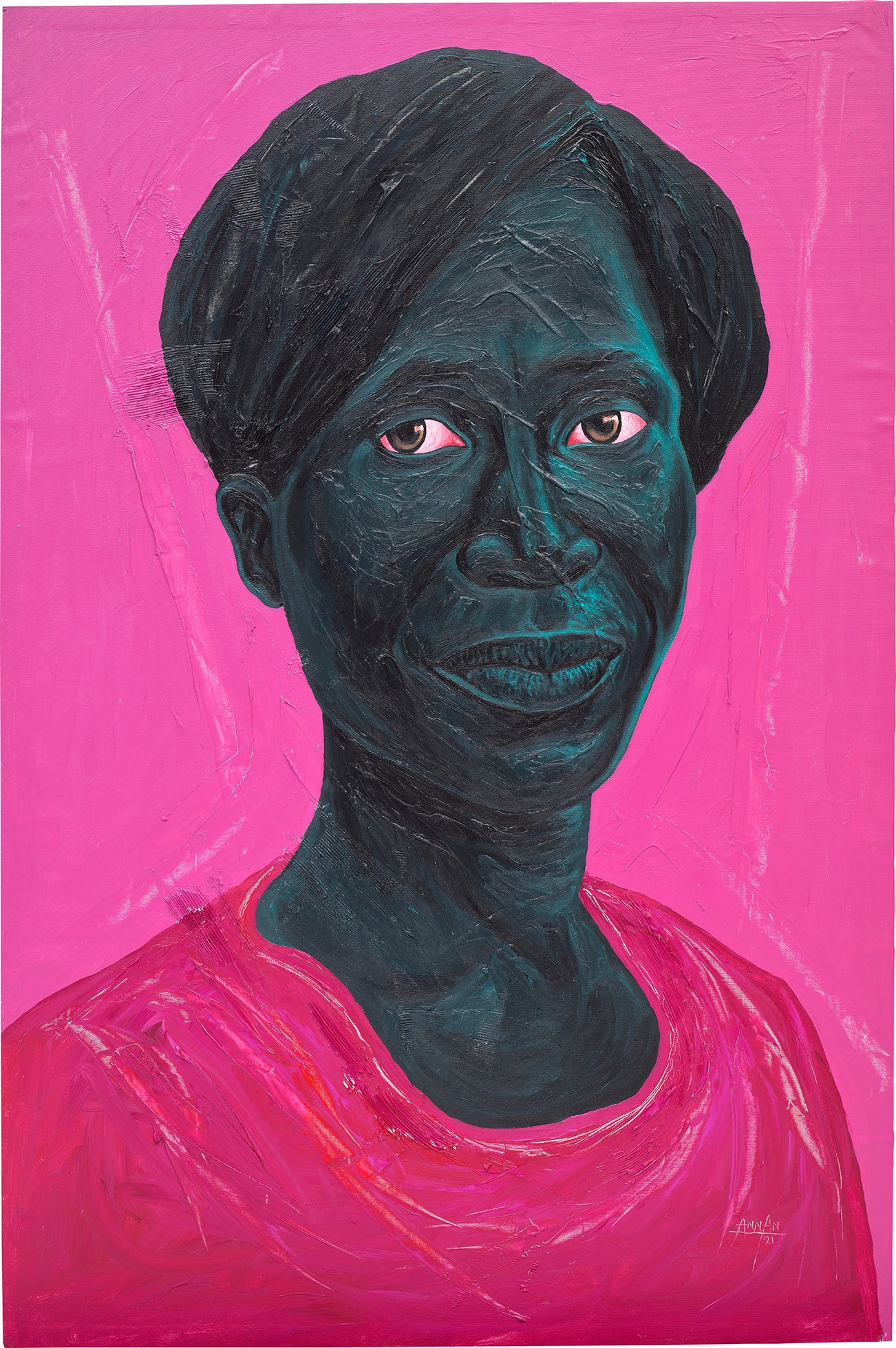signed and dated ‘ANNAN 21’ lower right; signed, titled and dated 'Annan Affotey Momo (Older Sister) 2021' on the reverse