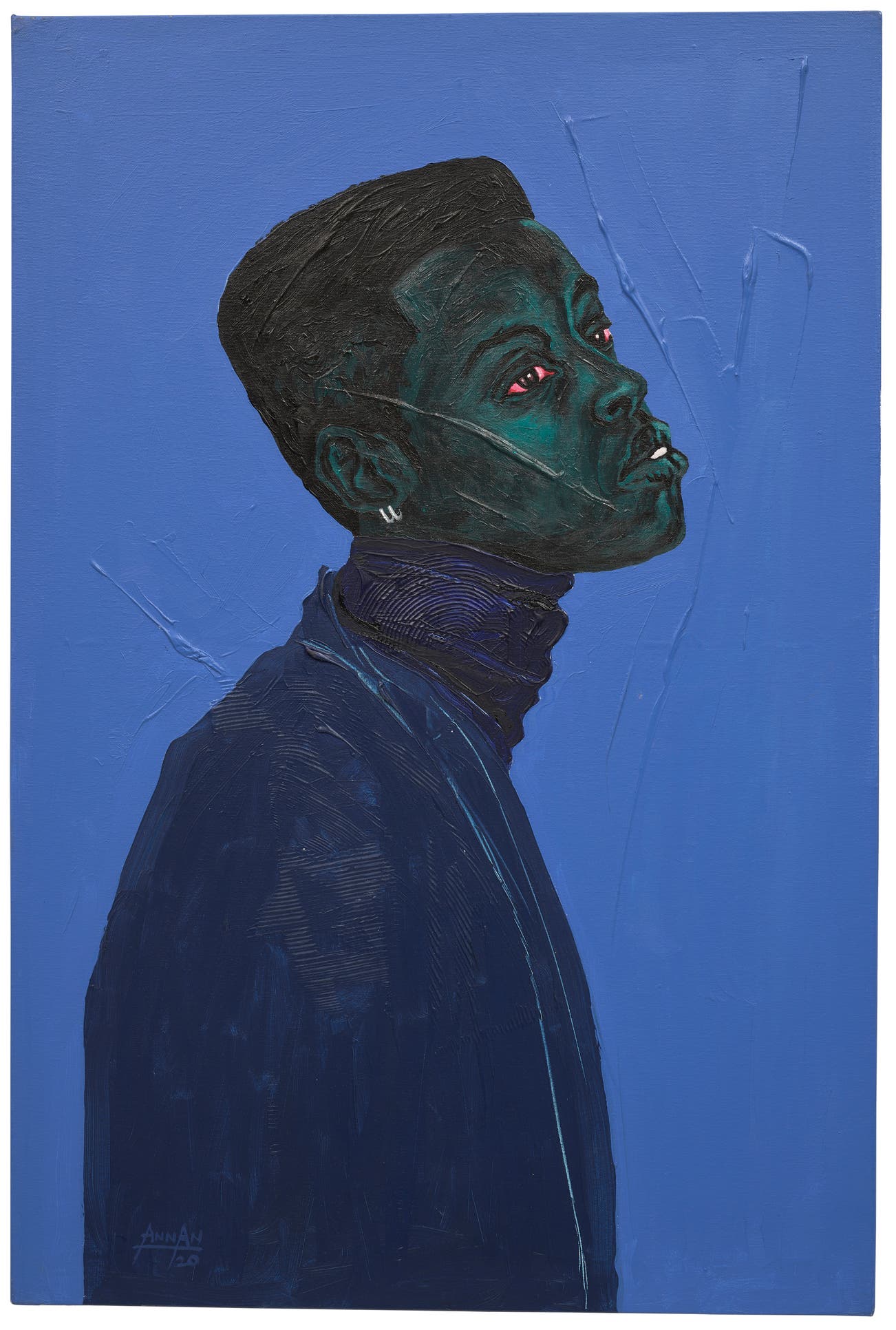 signed and dated 'ANNAN 20' lower left; signed, titled and dated 'Francis Annan Affotey Blue Turtleneck 2020' on the reverse