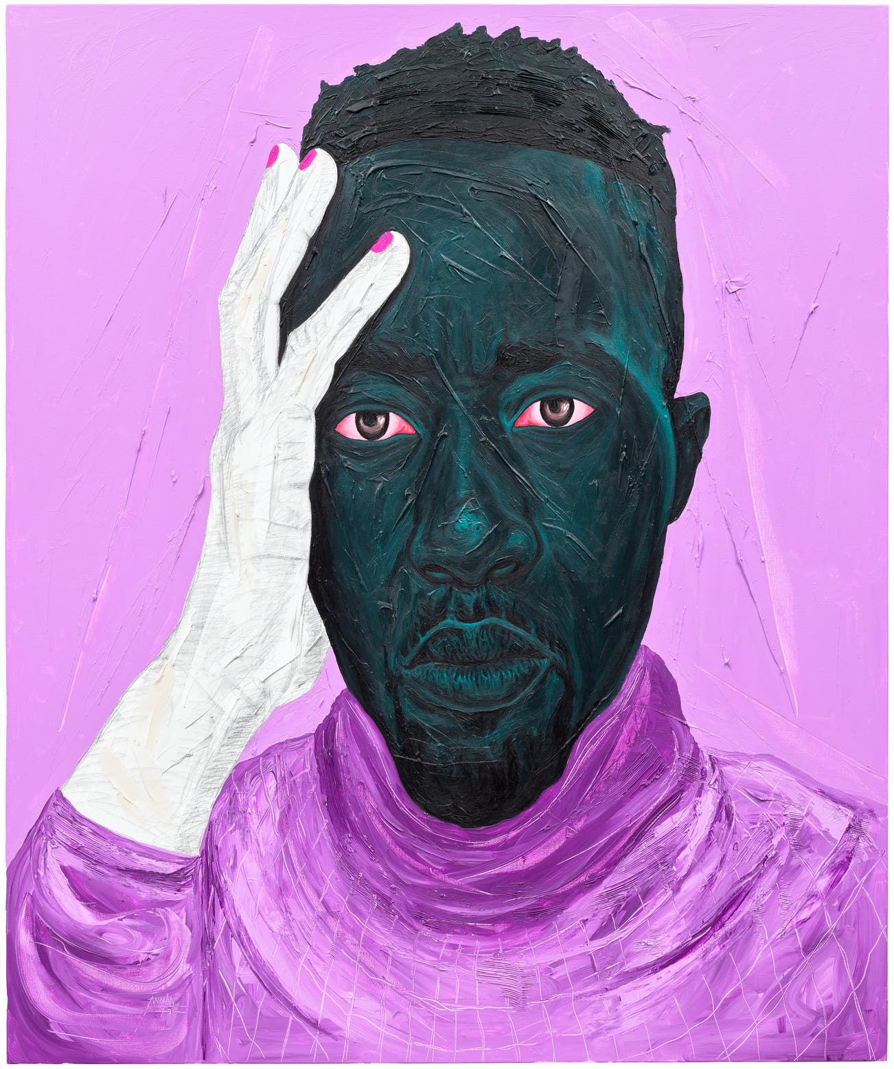 signed and dated 'ANNAN 21' lower left; signed, titled and dated 'Annan Affotey Deep Thought (Self portrait) 2021' on the reverse