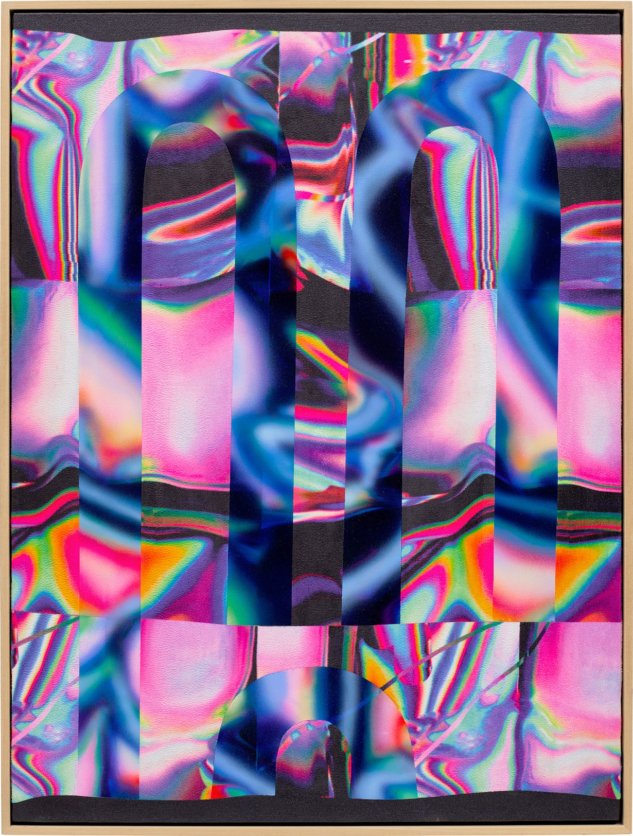 acrylic on sublimation dyed faux suede laid down on panel, in artist's frame