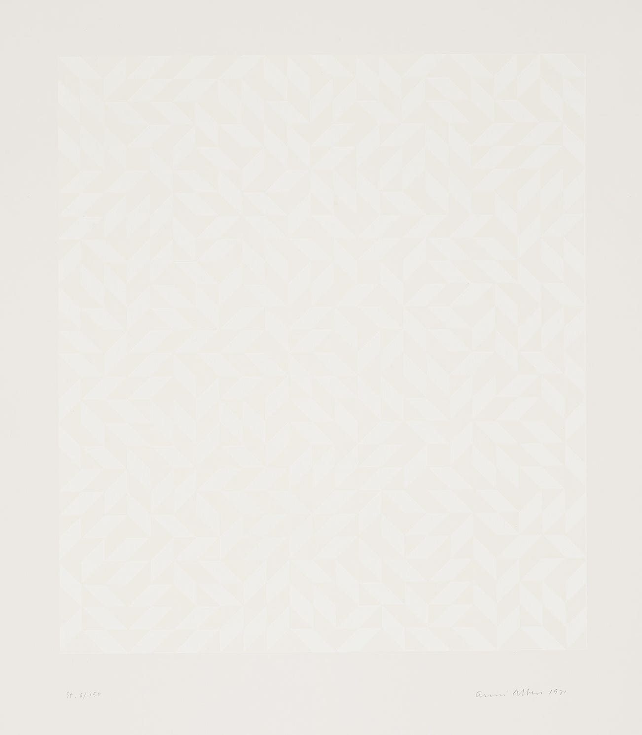 Later in life, Albers became a prolific printmaker. As in her textile work, her prints are characterized by bold geometric patterns and an inventive use of color. Living in the United States afforded her the opportunity to travel extensively in Mexico and South America, where she became interested in and inspired by Pre-Columbian art. Albers passed away in 1994 in her adopted home of New Haven, CT.