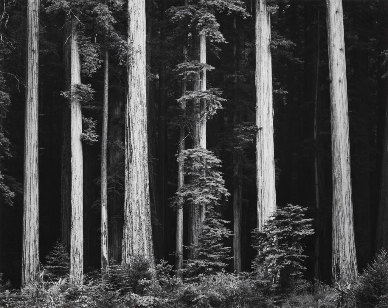"It is on these river-side 'flats,' often found at the confluence of two streams and built up gradually by the floods of the ages, that the Redwood forest achieves a quintessence of majesty, an aura of holiness. There is something Olympian about the trees’ massed ranks – if ever there were gods of trees, here they stand . . .” – Francois Leydet, The Last Redwoods