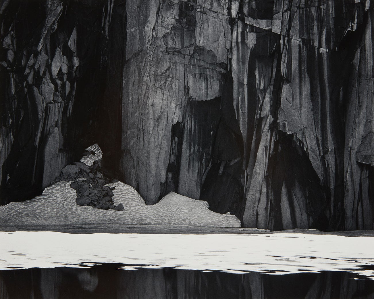 This photograph offered here was acquired by Charles Haupt, the present owner, directly from Ansel Adams in 1971. This print replaced one that had been previously sent but damaged in shipping. In the accompanying letter, Adams writes, ’Herewith the new print of FROZEN LAKE AND CLIFFS, KAWEAH GAP, SIERRA NEVADA, CALIFORNIA. I think it is a much better print than the first one! I hope you will be pleased with it.’ Haupt and Adams shared a passion for photography and classical music. A virtuoso violinist, Haupt was concertmaster of the Buffalo Philharmonic Orchestra for 37 years, performed with the Mostly Mozart Festival at Lincoln Center for 21 years, and is Director of A Musical Feast, a premier chamber music ensemble. An exhibition of Haupt’s black-and-white Polaroid work was shown at the Burchfield-Penney Art Center, Buffalo, in 1994.