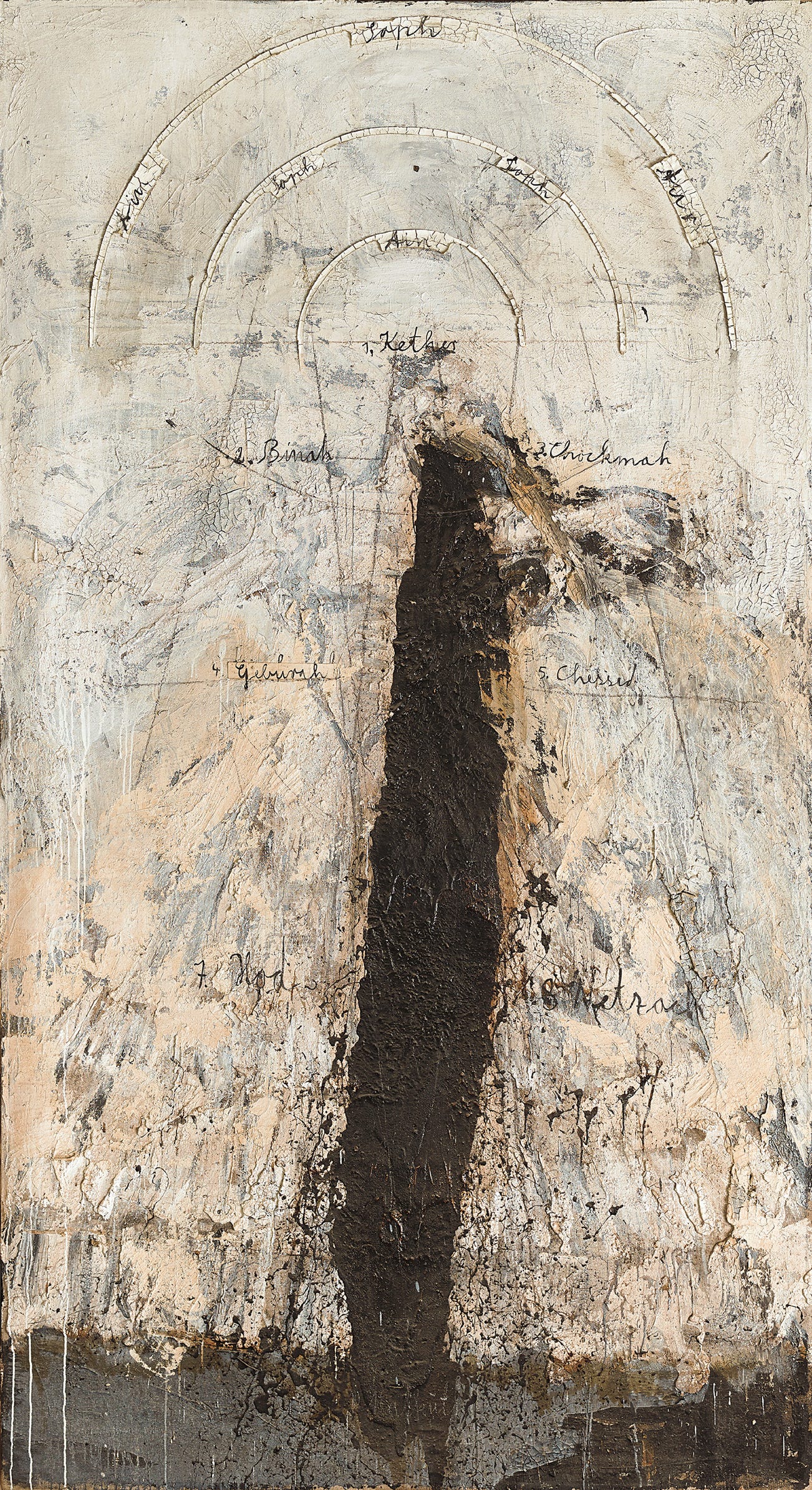 In Die Sefiroth, Kiefer captures a form of sublime that is spiritual yet violent. Though his unique ability to associate the destruction of the past with the timelessness of truth and trauma, the artist materialises the traditional German proverb that Kuspit has associated with his work, ‘What is new is not true and what is true is not new’ (Kuspit, ‘The Spirit of Gray’, Artnet, online). It is perhaps, though, Kiefer himself who best elucidated the enigmatic spirit of Die Sefiroth by clarifying his interest in the Jewish mysticism at the heart of the picture: ‘"Kabbala[h]” means “knowledge that has been received", a secret knowledge; but I think of it as images that have been received… The [k]abbalistic tradition is not one but many, forming a sophisticated spiritual discipline. It is a paradox of logic and mystical belief. It’s part scholarship, part religion, part magic. For me, it is a spiritual journey anchored by images’ (Anselm Kiefer, quoted in ‘Heaven and Earth’, Anselm Kiefer, exh. cat., Guggenheim Museum, Bilbao, 2007, p. 339).