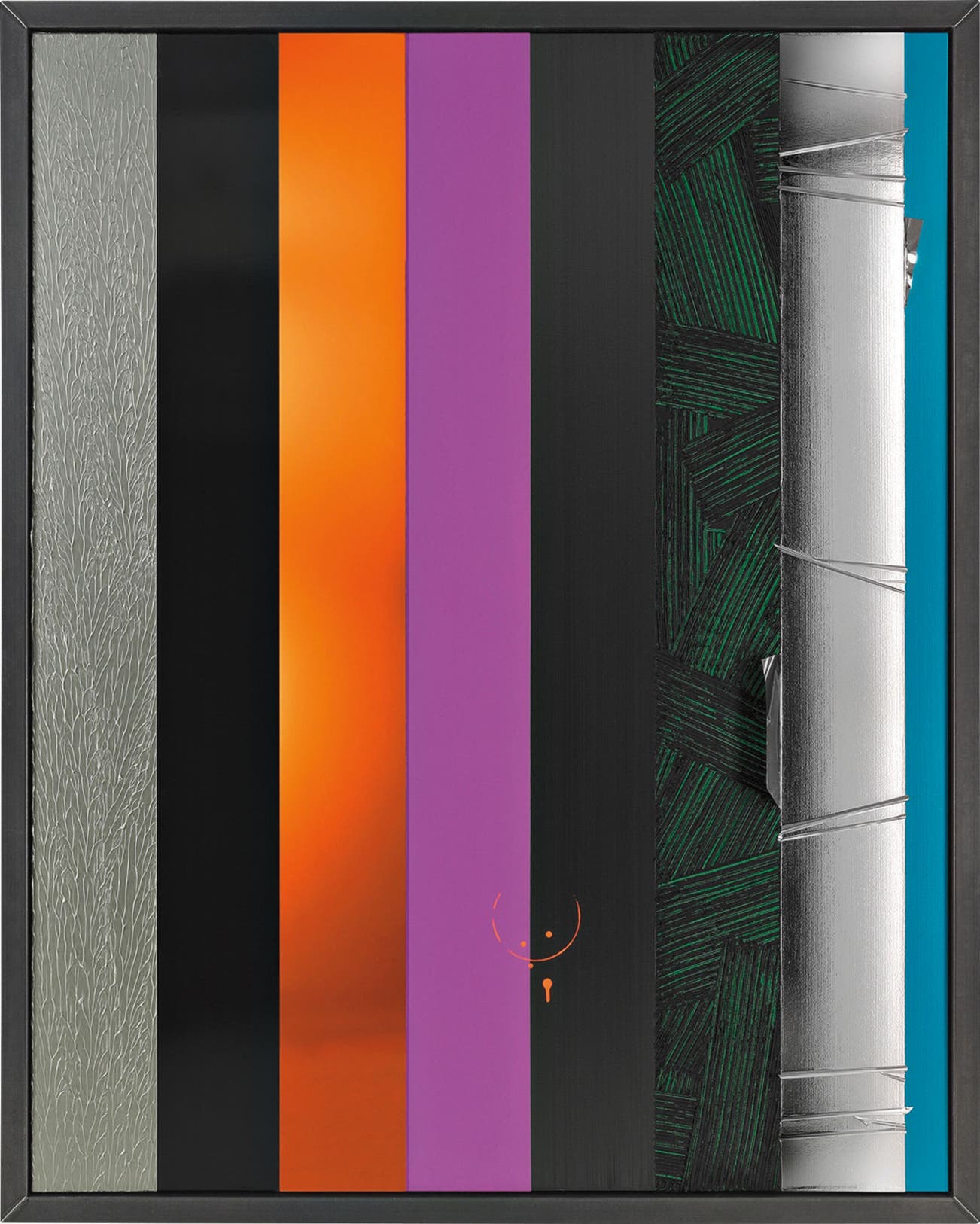 acrylic, PVC foil and mirrored Plexiglas on canvas, in artist's metal frame