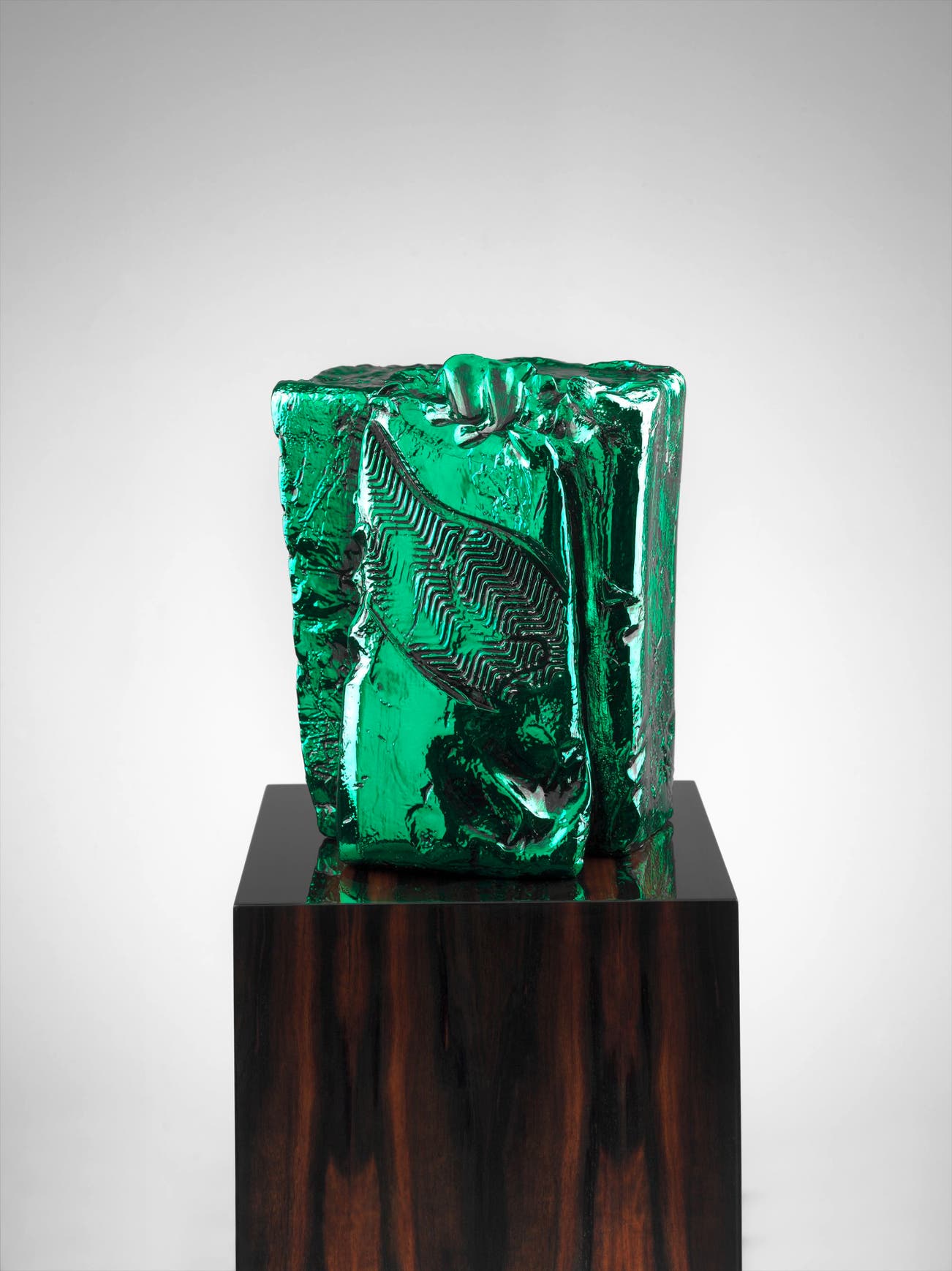 bronze, chrome enamel varnish and artist's makassa wood veneer plinth
