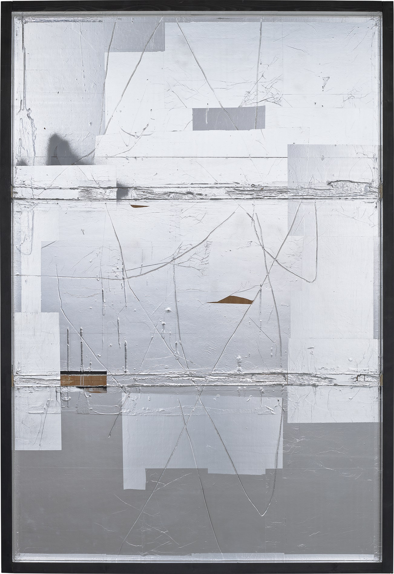 acrylic and aluminium foils on panel, in artist's frame
