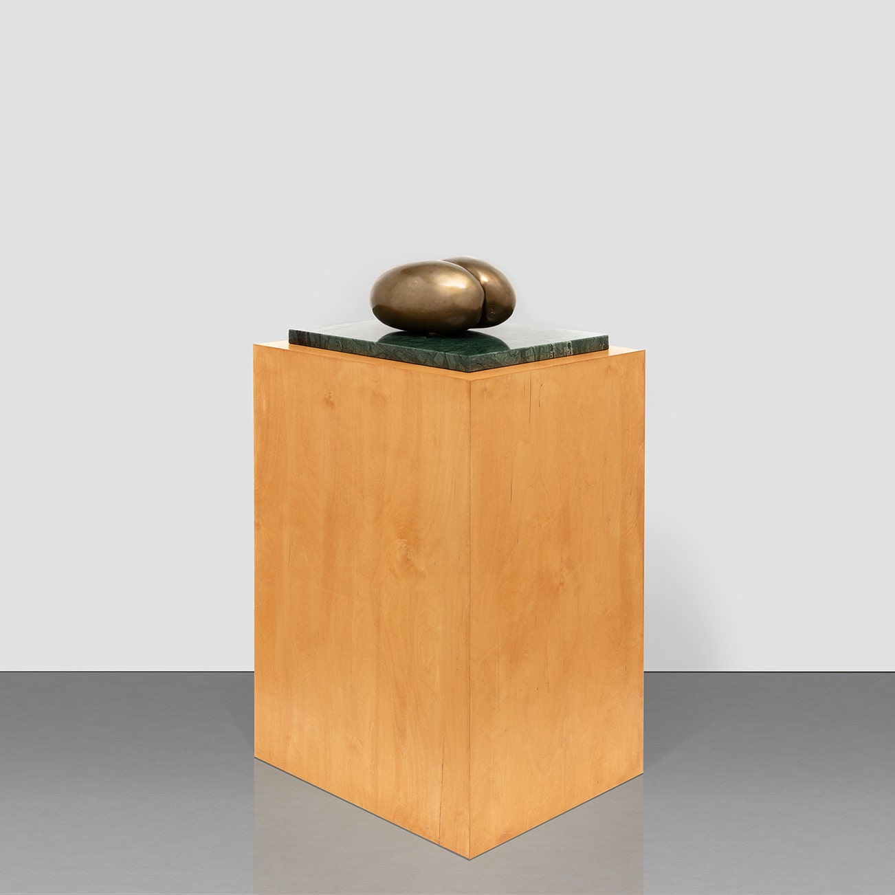 bronze with light brown patina, marble and wooden pedestal