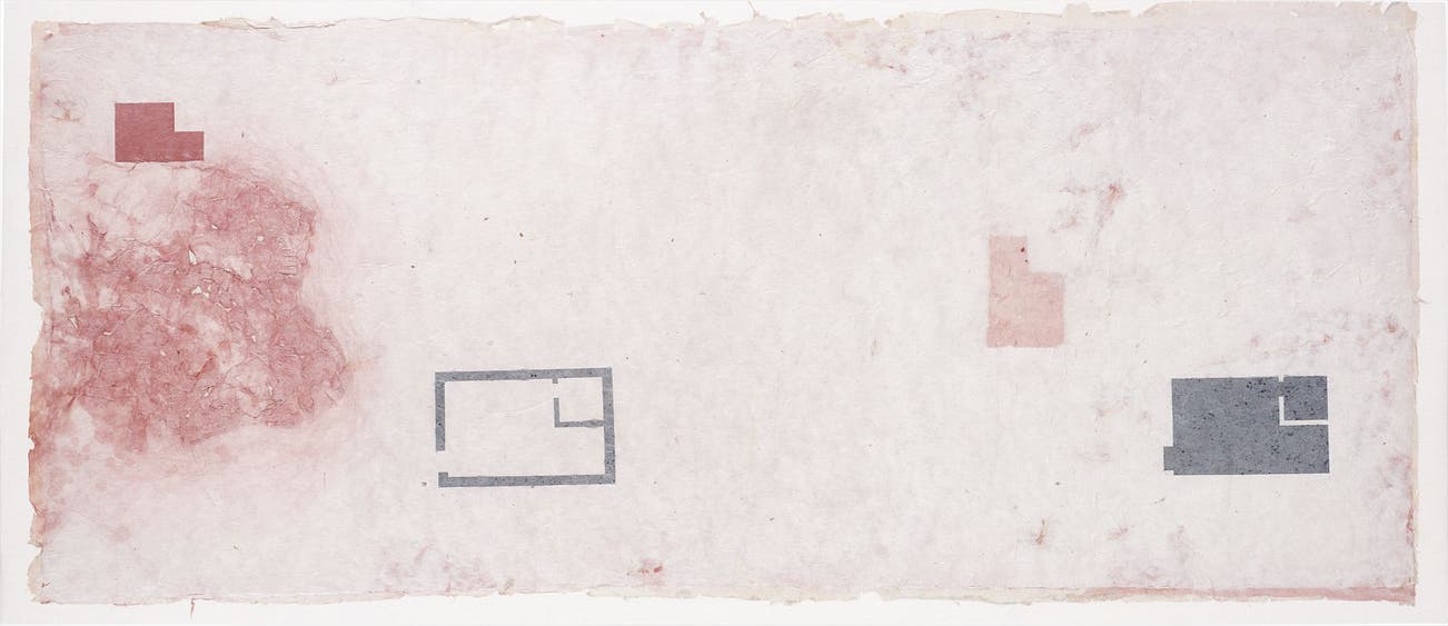 mixed media and iron oxide on handmade paper, laid on canvas