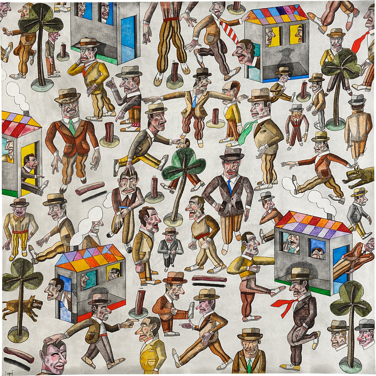 signed, titled and dated ""CAER PARADO" Segui 2001" on the reverse