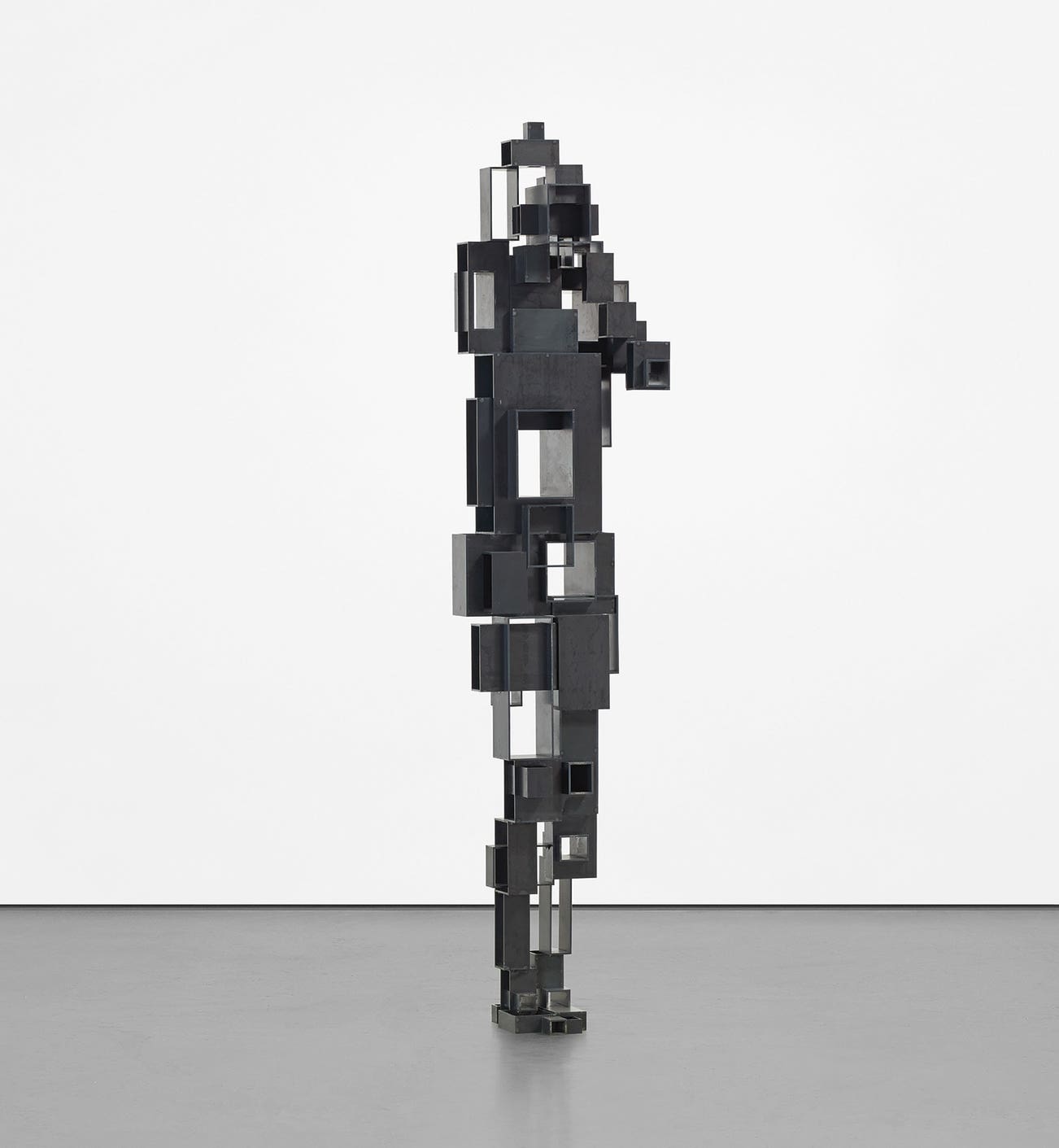 Mass and space, light and dark, line and volume are all at play. The work is a score to be read by the body.