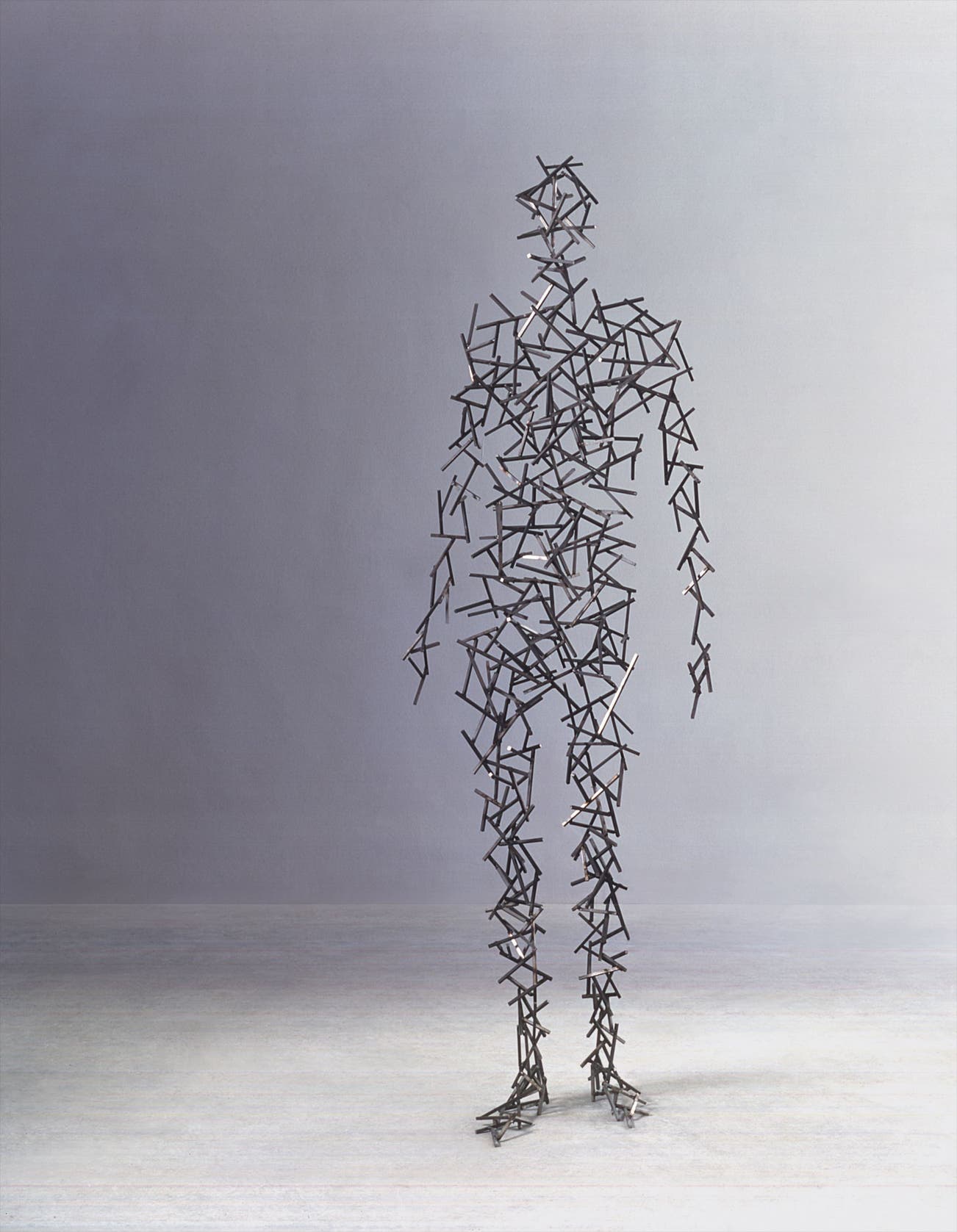 "The Domains, as Gormley says, are a kind of drawing in space. Although they are clearly three-dimensional...a body has been built up using lines as its constituents, hatched just as in the practice of drawing, creating and dispersing volumes with nothing more than the steel rods that always point to their own density as lines." (D. Leader, Drawing in Space: Antony Gormley, From Making Space publishised by BALTIC, 2004, www.whitecube.com)