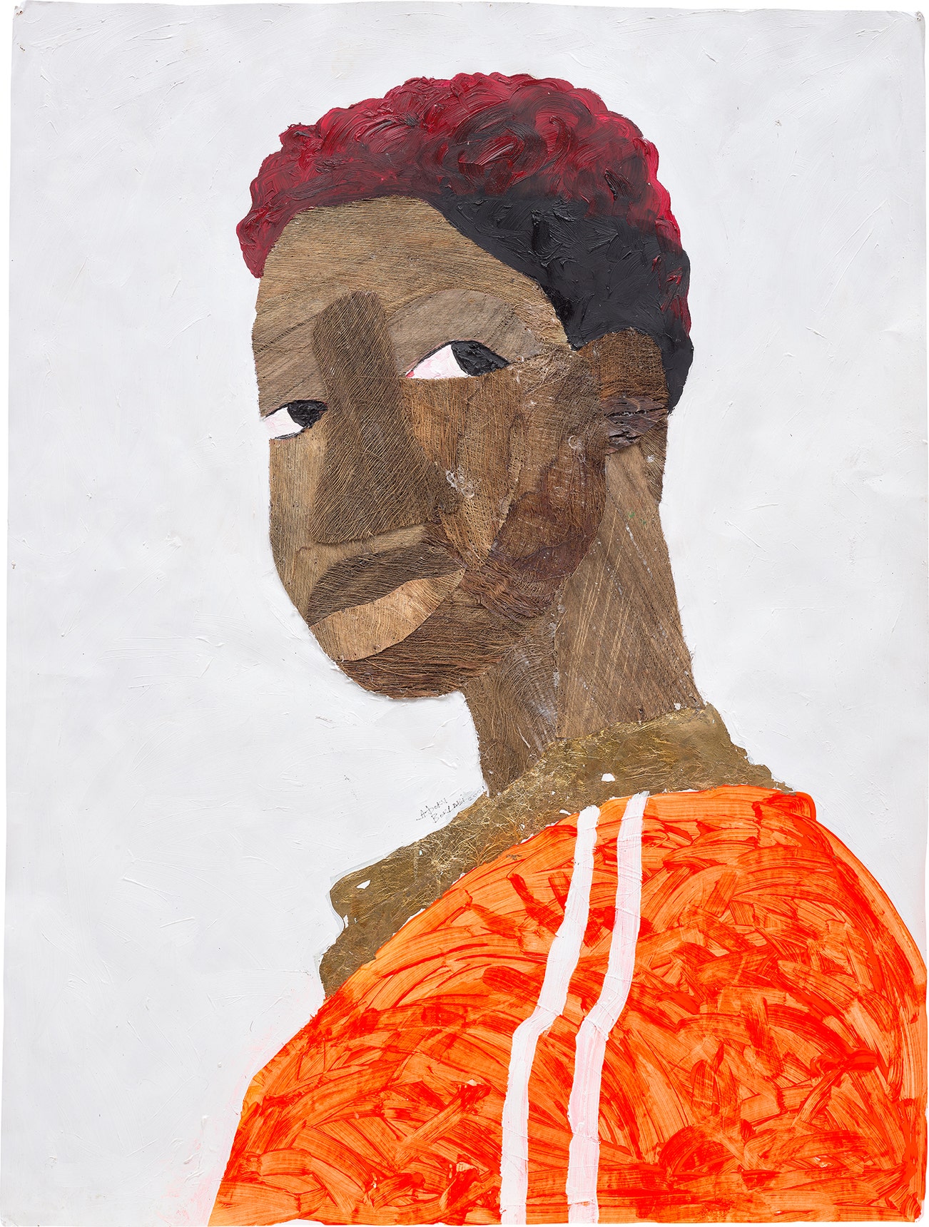 acrylic, gold leaf, graphite and coconut fibre collage on paper