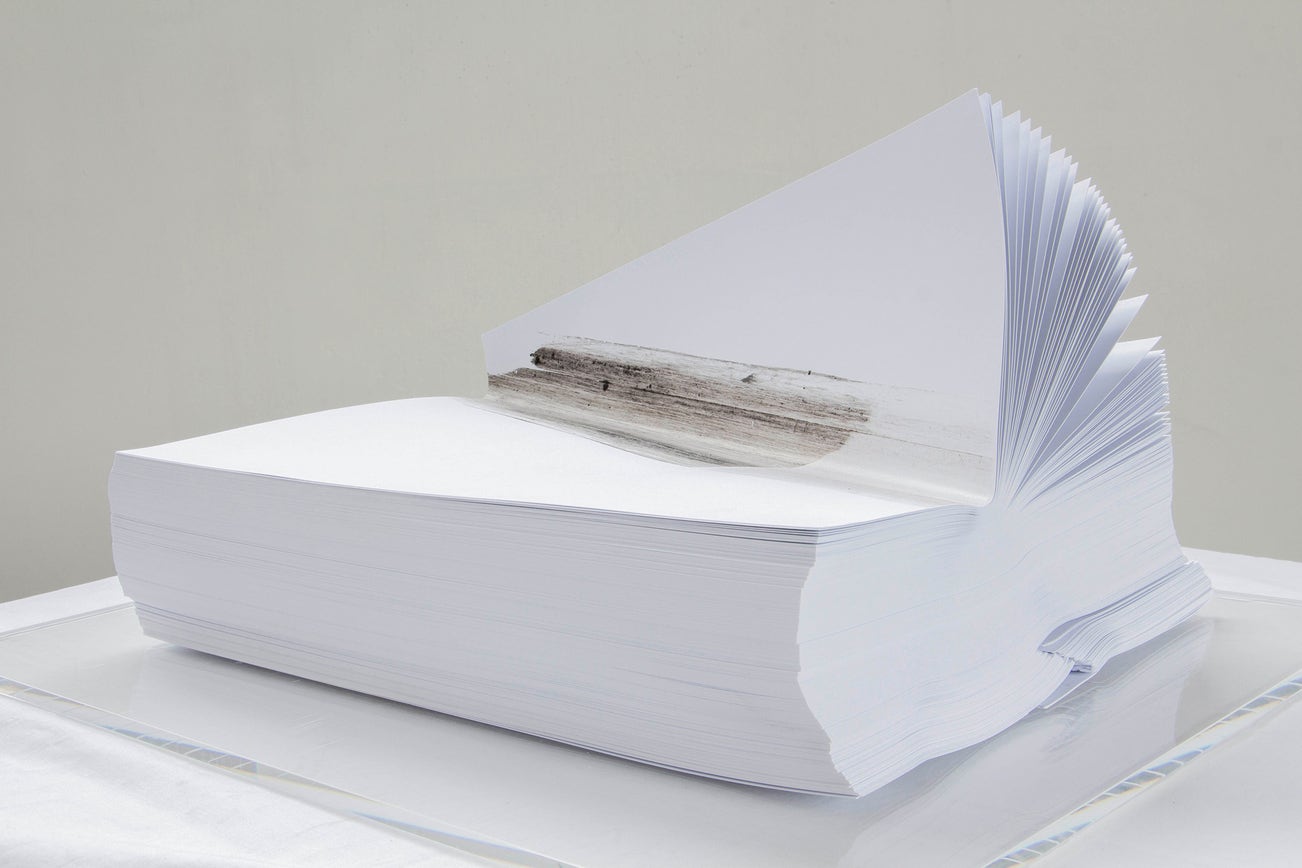 pressed paper in acrylic glass vitrine