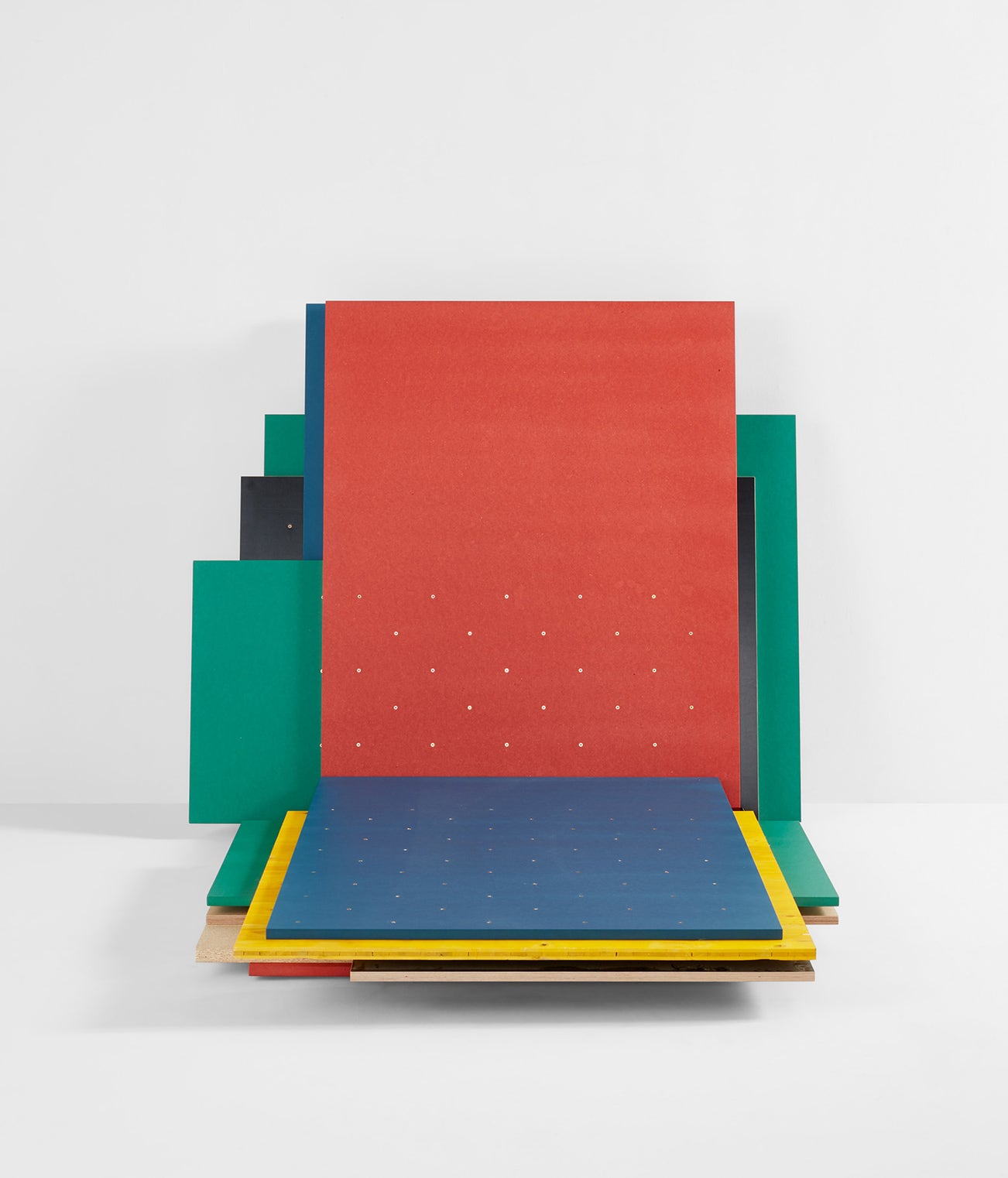 Jan De Vylder, Inge Vinck, and Jo Taillieu made up the firm architecten de vylder Vvnck taillieu and were renowned for their approach to architecture which first seems banal and then, for those who take a longer look, knowingly idiosyncratic. In “Kamer Frank,” the architects carried this approach into their furniture design, rejecting an affinity for any style or idealized form and, instead, allowing the user to create their own surroundings by rearranging the various colors and sizes of the boards to create new abstractions.