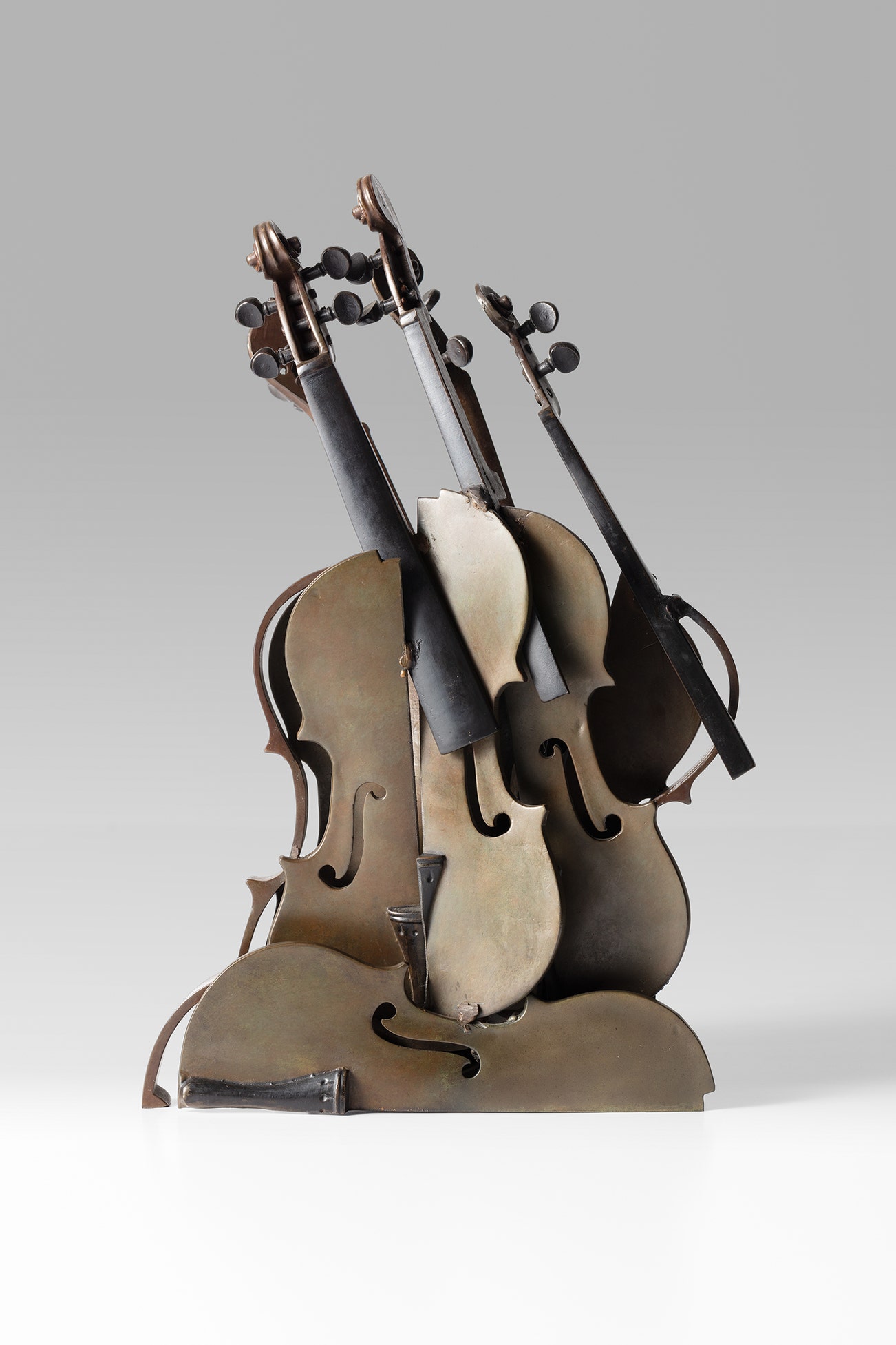 sliced violins cast in bronze, welded