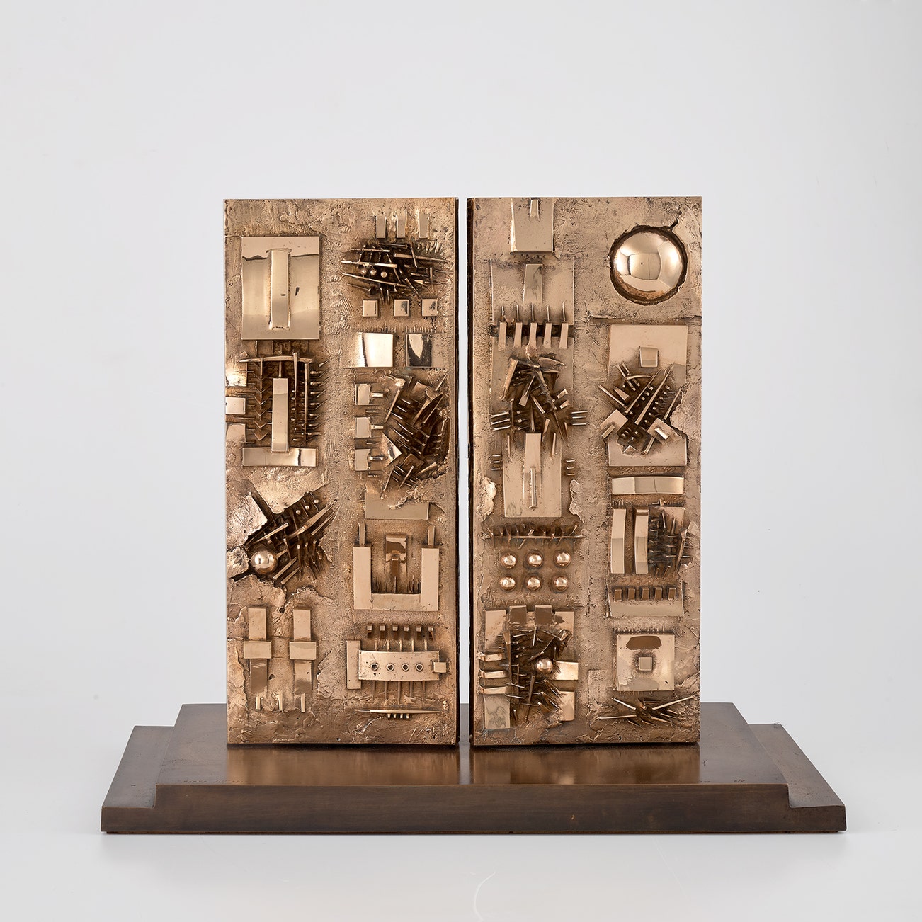 incised with the artist's signature, title and number '"PORTE dell' EDIPO Arnaldo Pomodoro 6/9' on the base
