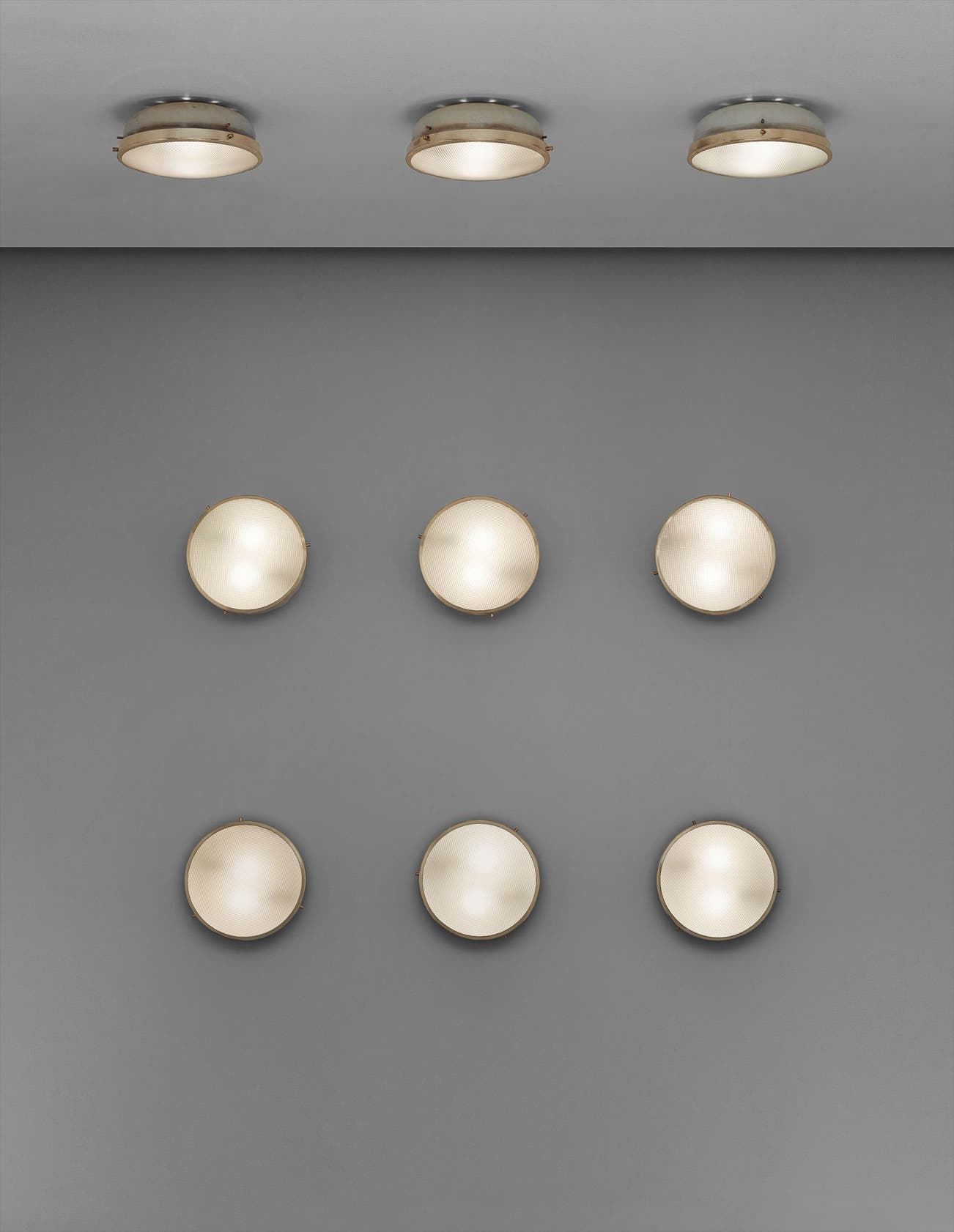 Manufactured by Arteluce, Milan, Italy. Seven shade exteriors with manufacturer's paper label AL/MILANO/ARTELUCE.