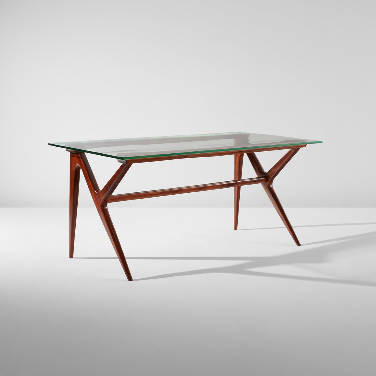 Walnut, glass.