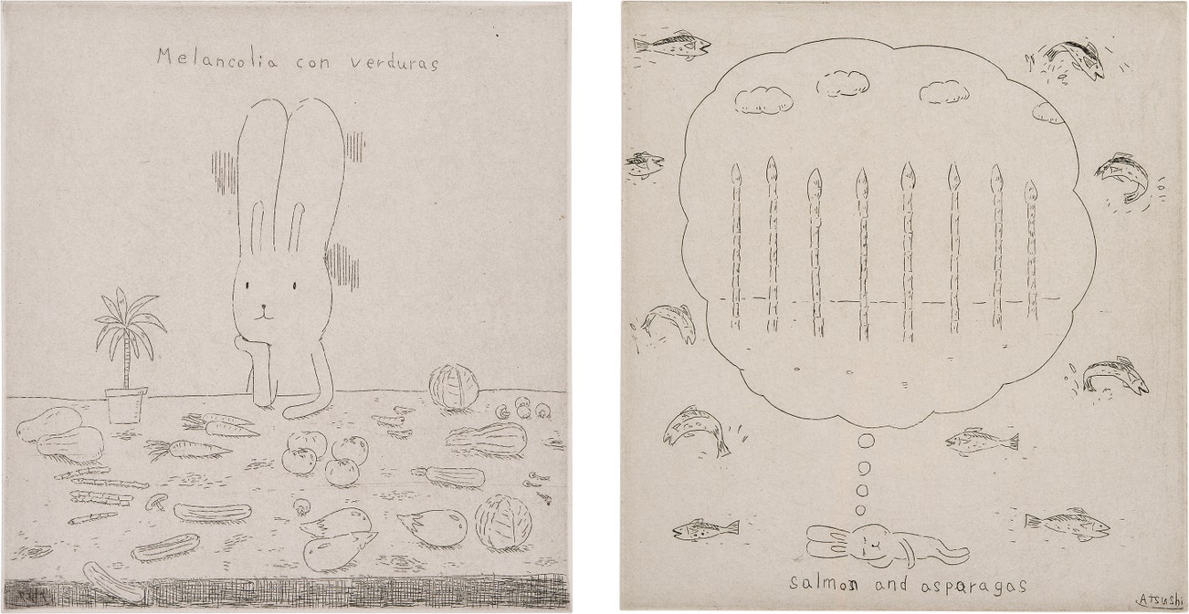 Two works: (i) Salmon and Asparagus; (ii) Melancolía con Verduras