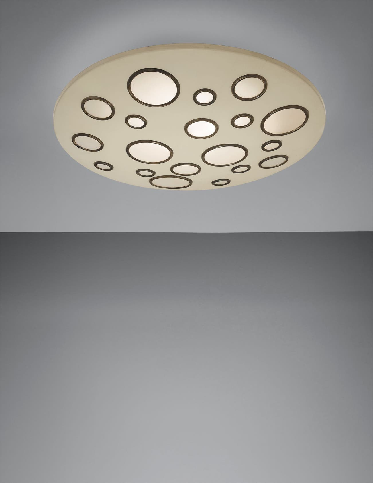 Opaque glass, brass, painted metal.