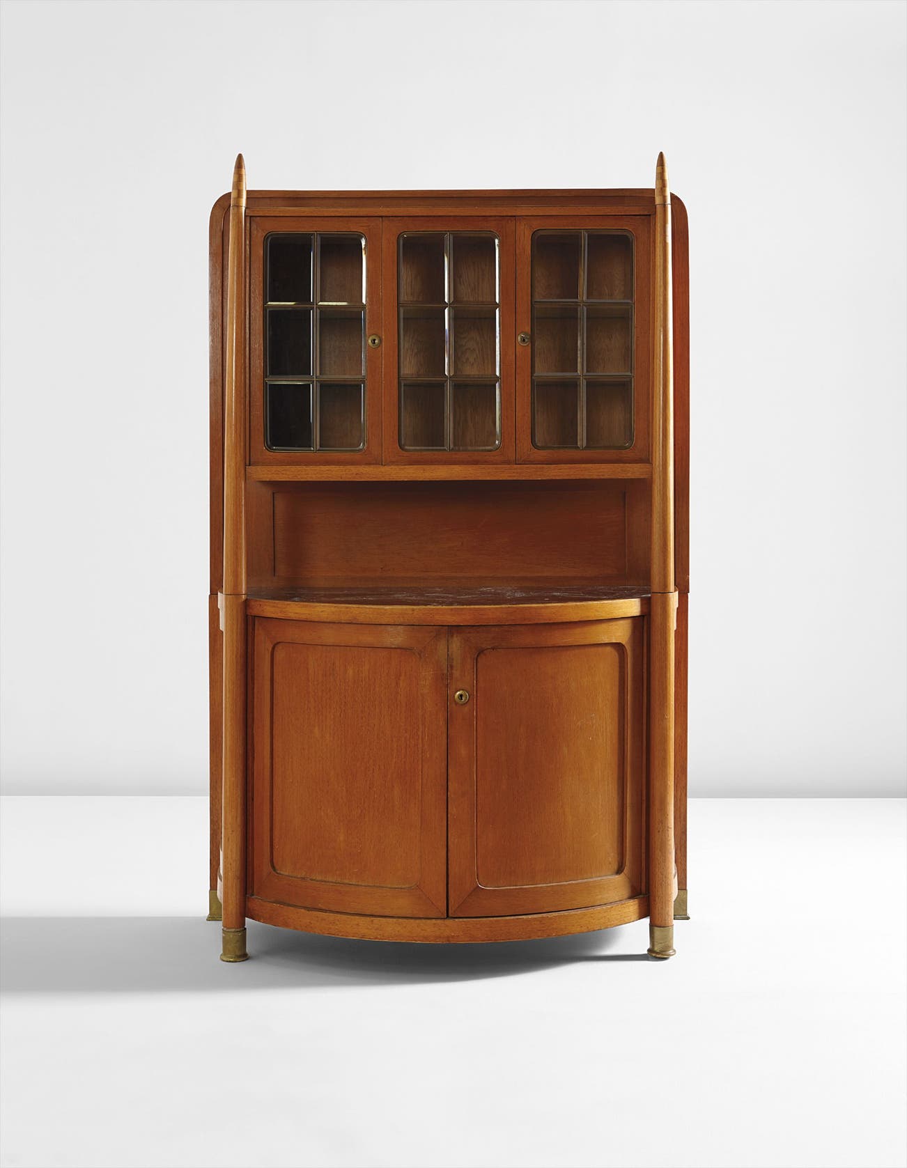 Beechwood, marble, brass, leaded glass.