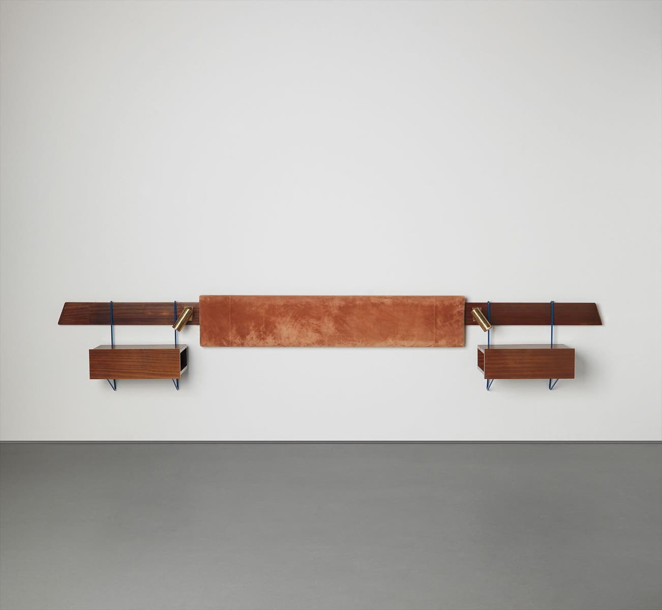 Mahogany-veneered wood, painted metal, brass, velvet.