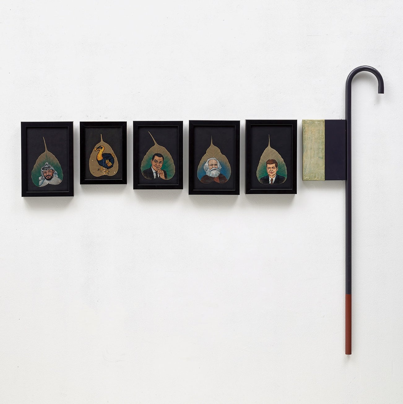 oil on dried leaf, powder coated mild steel and auto body solder and red oxide