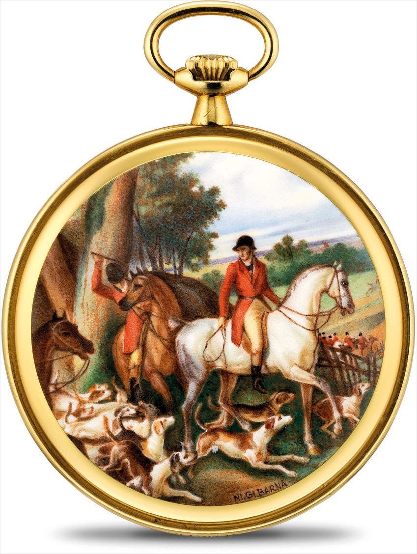 A very fine and unique yellow gold openface watch with miniature enamel painted by Ni. Gi. Barna
