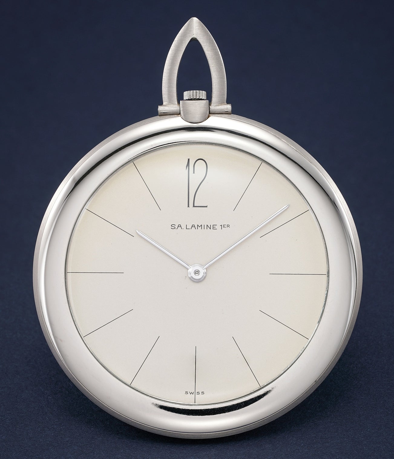 An extremely elegant white gold pocket watch with elongated 12 made for SA Lamine 1er