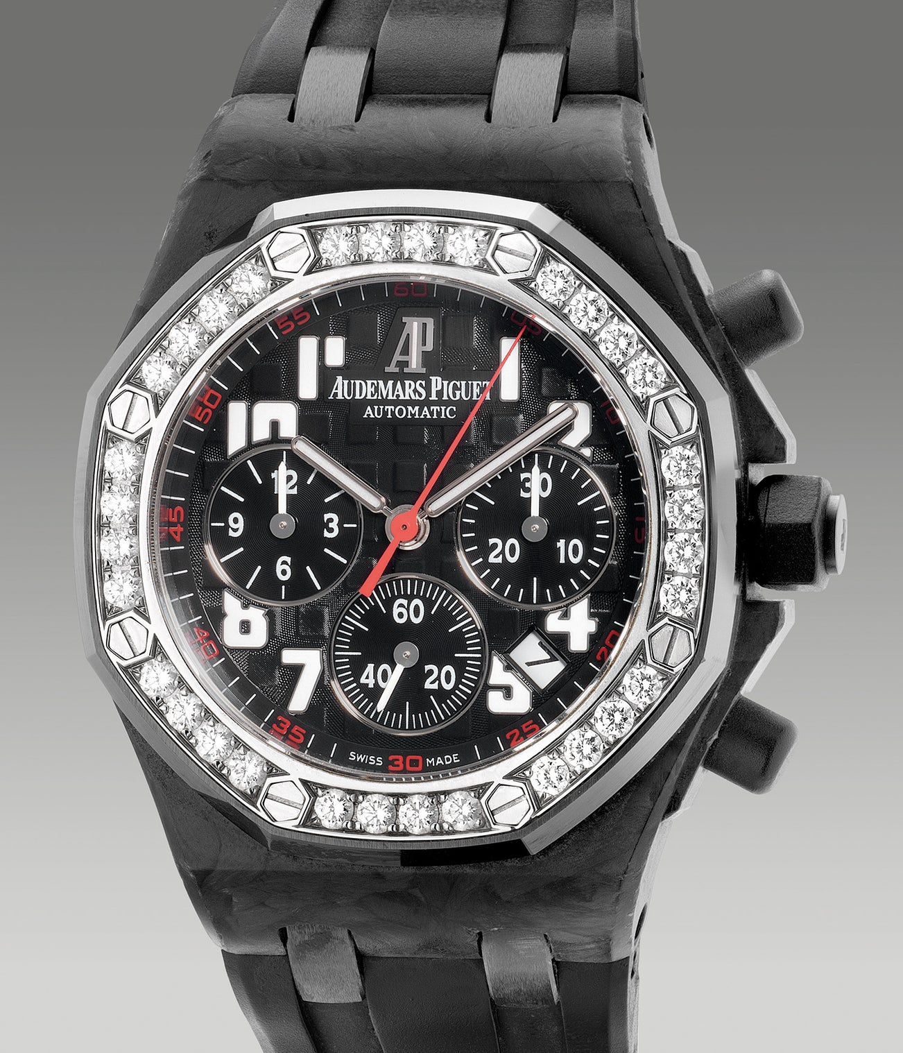 The present Royal Oak Offshore Chronograph encased in a forged carbon case fitted with a diamond-set bezel is the firm’s testament to their technical excellence in incorporating new materials on a wristwatch executed with traditional craftsmanship. With a comfortably light and sturdy case, the all black appeal contrasted with it diamond-set bezel and red accents certainly exudes a sporty vibe perfect to wear at the gym.