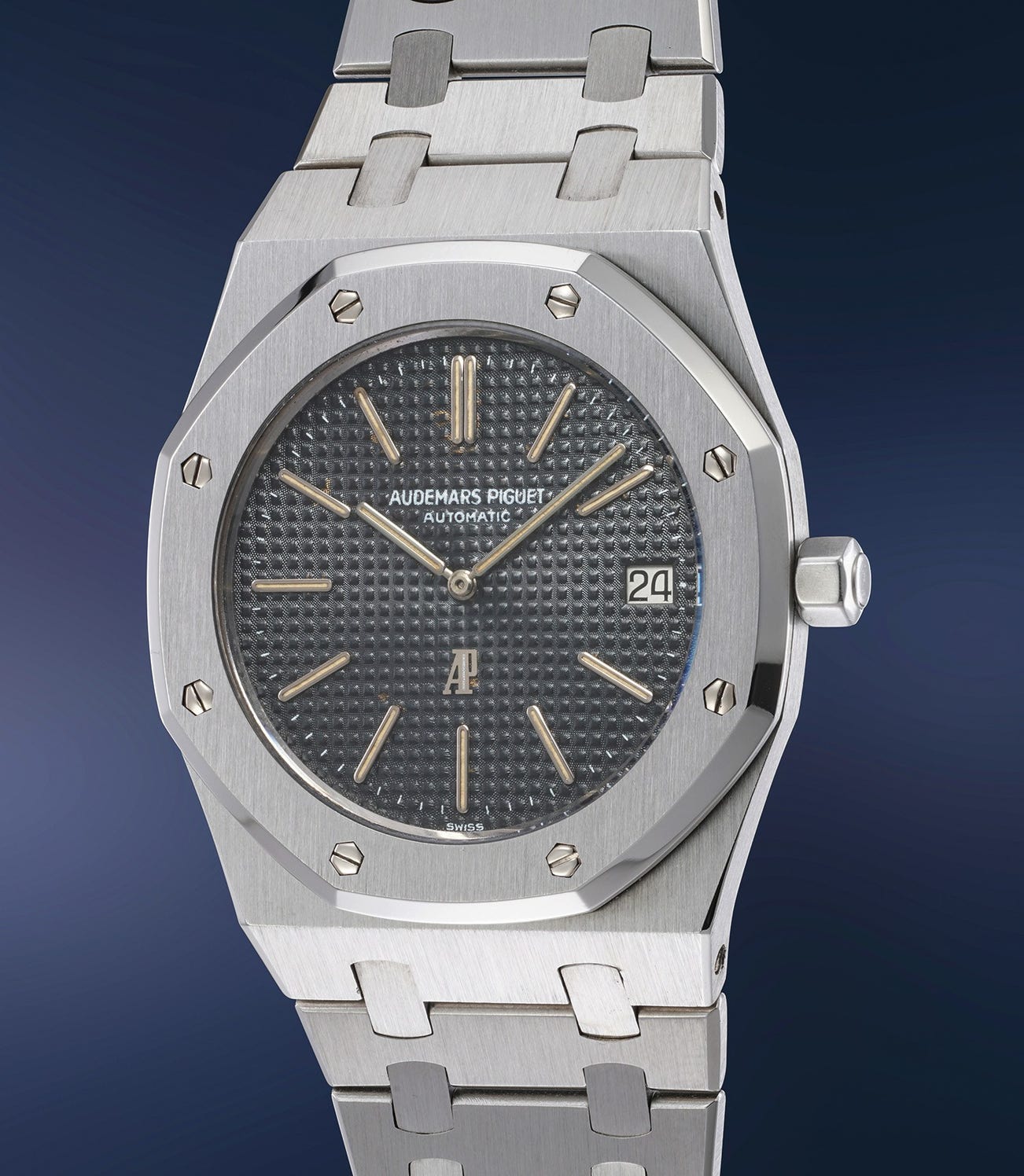 Launched in 1972, the Audemars Piguet Royal Oak was the world’s first stainless steel luxury sports watch with a fully integrated bracelet. Designed overnight in response to an urgent request for an ‘unprecedented steel watch’, it was at the same time the most expensive stainless steel watch ever made. The brand sought famed designer Gerald Genta, who developed a brilliantly engineered, monoblock case, with a distinctively maritime feel, featuring an octagonal bezel secured by eight hexagonal, white gold screws, and a dial with tapisserie motif. While today the Royal Oak is a legend, accounting for over 70% of the brand’s sales, at the beginning it was more than a bet, it was a true visionary revolution, the first appearance of what is today's most successful kind of wristwatch: the luxury sport watch in steel.
