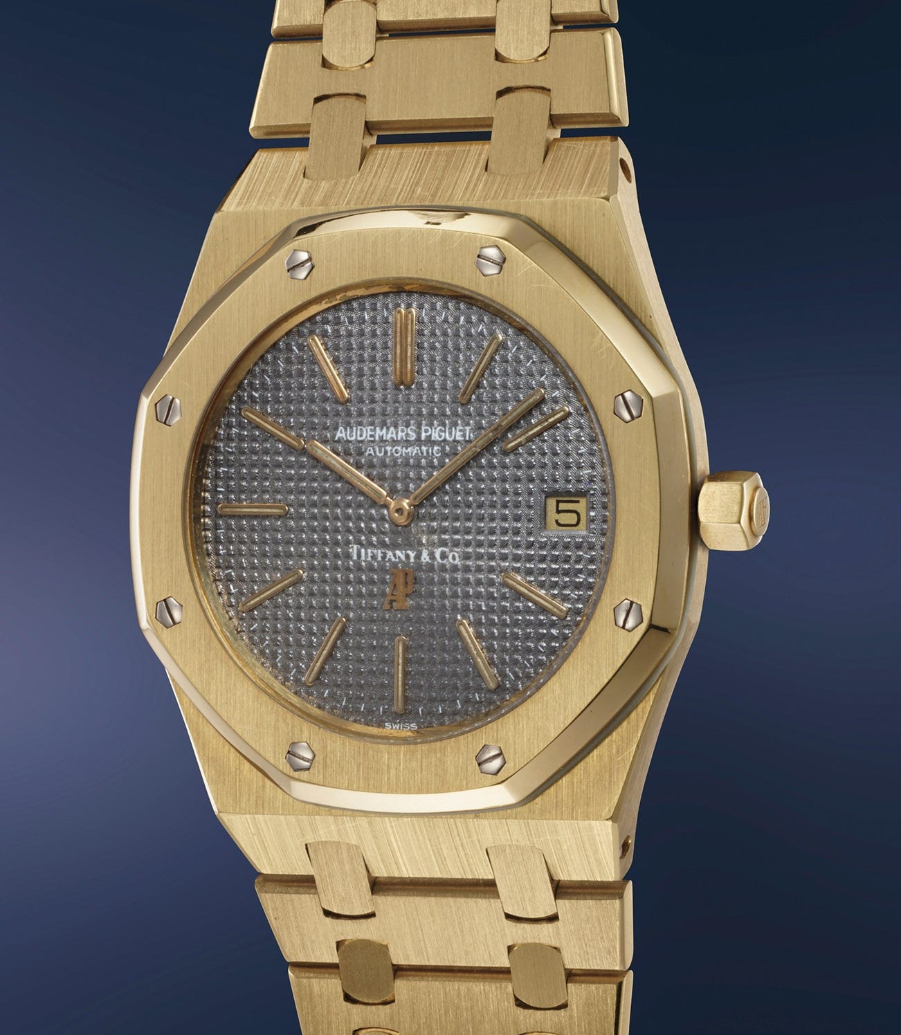 The rarity of the present 5402 is taken to Himalayan heights thanks to the 10 letters printed right above the AP logo at 6 o’clock: Tiffany & Co.
