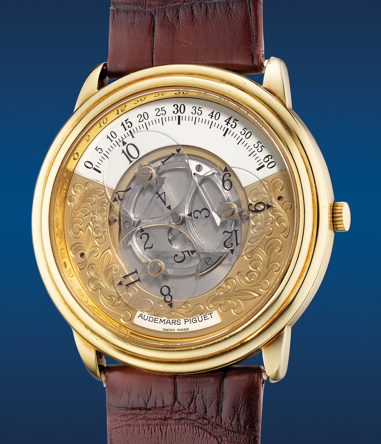 The present example in yellow gold displays a wonderfully hand-engraved dial depicting floral motifs that go hand in hand with its “Star Wheels”. A true classic from Audemars Piguet, collectors today have once again recognized the importance and uniqueness of the Star Wheel and are sought after watches in the market today.