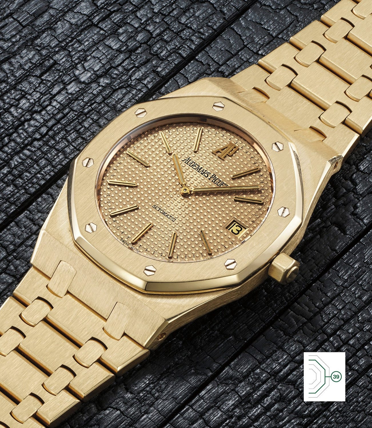 Aesthetically this reference was very close to the original reference 5402, so much so that many components were interchangeable. It featured the same monobloc case with a solid caseback and tapisserie dial, only the angle of the bevelled bezel was slightly modified to reach 45 degrees, compared with 40 degrees for ref 5402. The Audemars Piguet signature and applied AP logo were also larger than in the reference 5402.