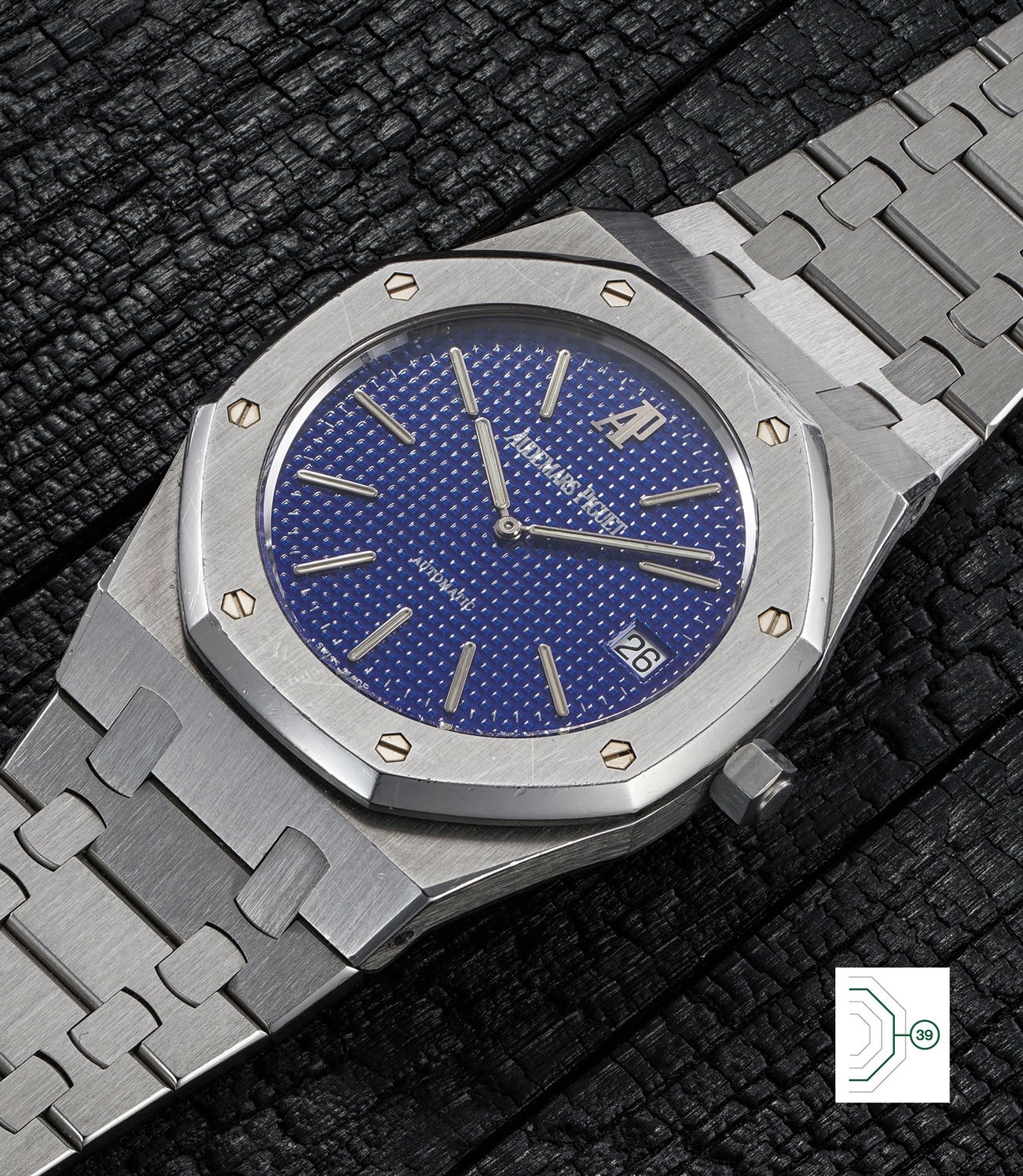 Preserved in excellent overall condition, the watch, with its 39mm "Jumbo" case, exudes presence on the wrist while remaining well balanced as a result of its slim case. The splash of electric " Yves Klein" blue adds playfulness and further dramatizes the timepiece's overall appearance.